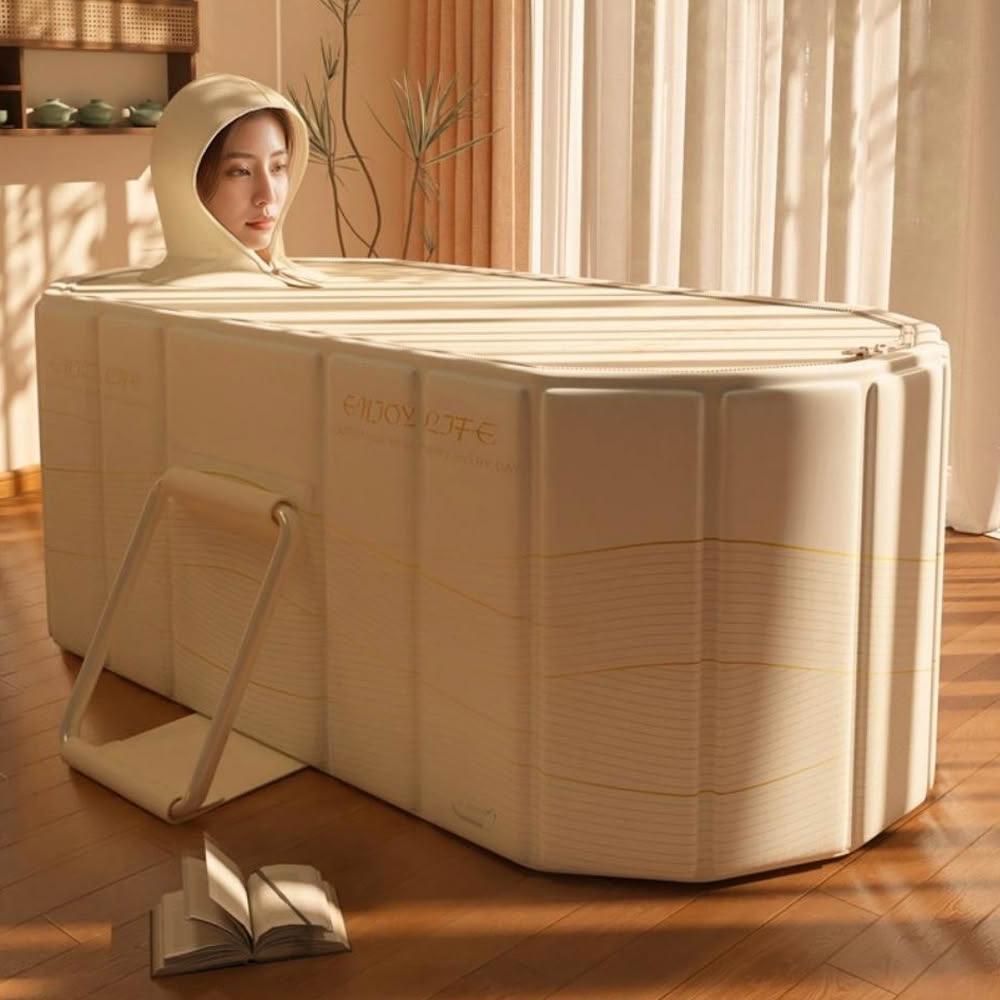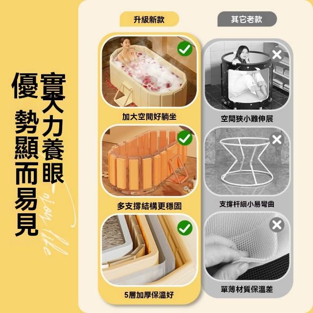YIZ 家用折疊泡澡桶 免安裝浴缸 1.5米大空間(成人款 5層加厚保溫 環保材質 免安裝即開即用 帶保溫蓋款)