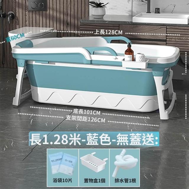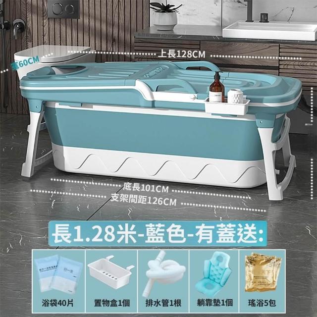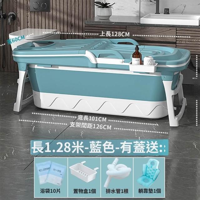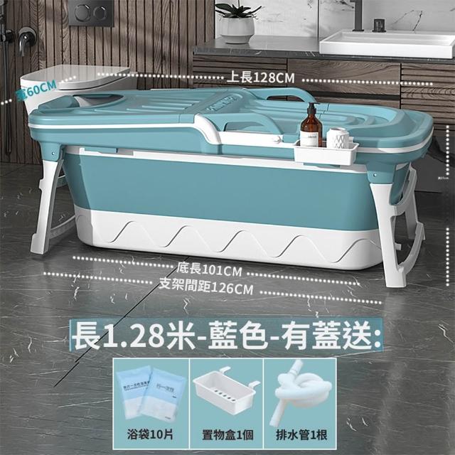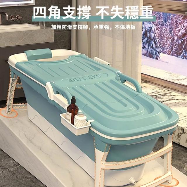YIZ 家用泡澡桶 折疊浴缸 1.3米 全身可伸(送浴袋 + 置物盒1個+ 排水管1根+躺靠墊+瑤浴 有蓋款)