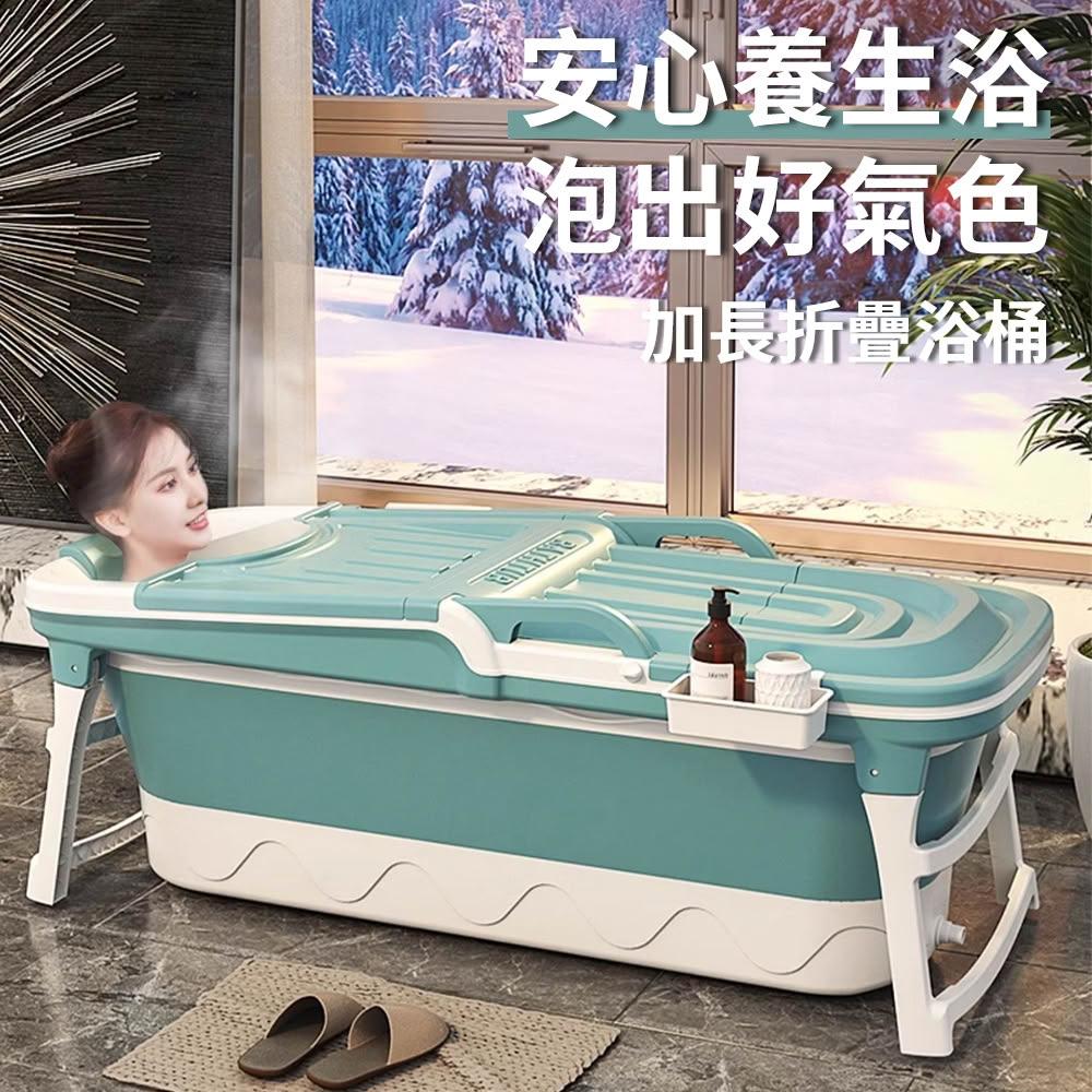 YIZ 家用泡澡桶 折疊浴缸 1.3米 全身可伸(送浴袋 + 置物盒1個+ 排水管1根+躺靠墊+瑤浴 有蓋款)