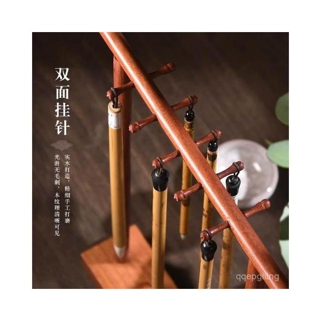 創意毛筆掛筆架文房四寶複古實木紅木毛筆架學生用桌麵收納毛筆擱