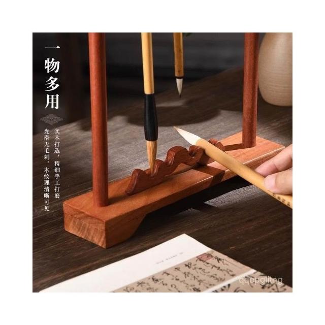 創意毛筆掛筆架文房四寶複古實木紅木毛筆架學生用桌麵收納毛筆擱