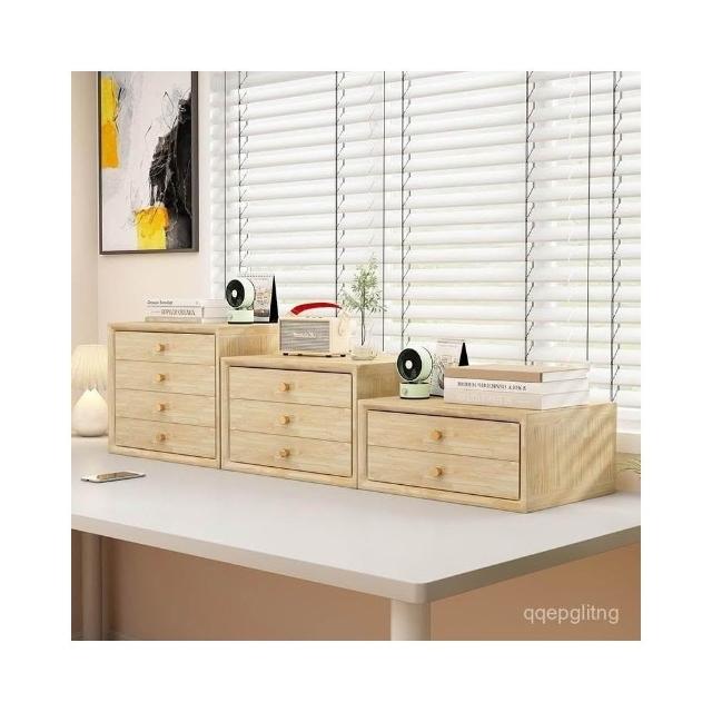 實木桌麵收納盒抽屜式收納櫃雜物文件整理櫃大容量多層儲物盒整裝 桌上收納櫃 文件收納