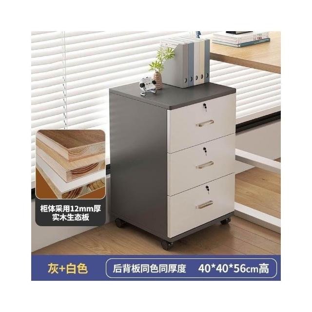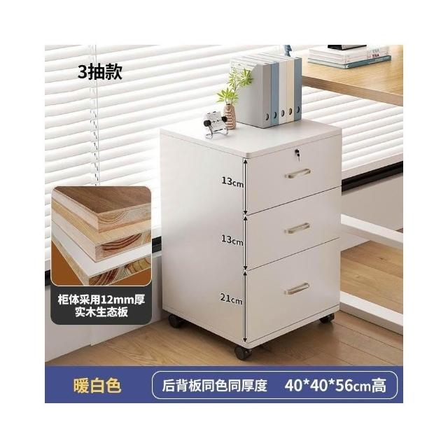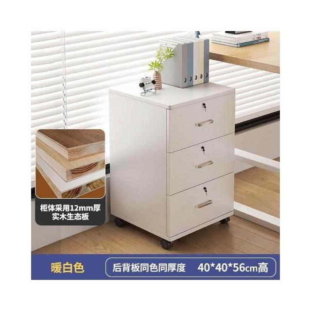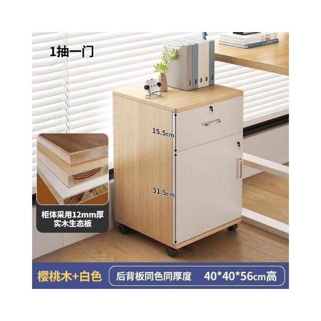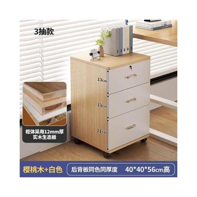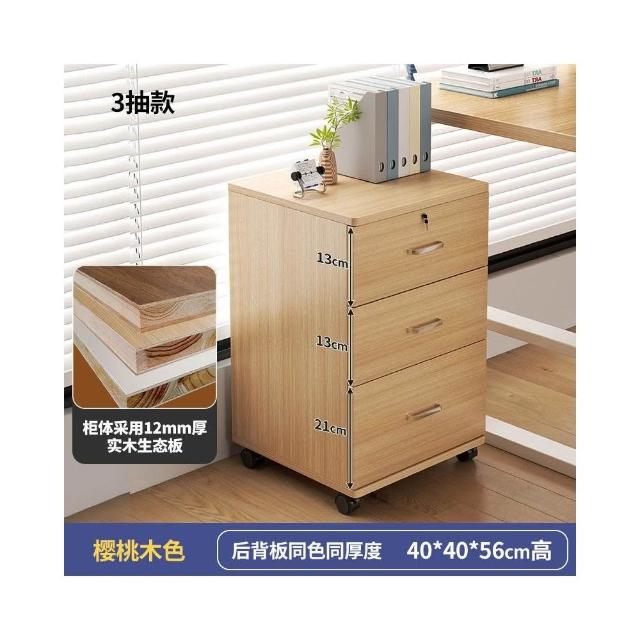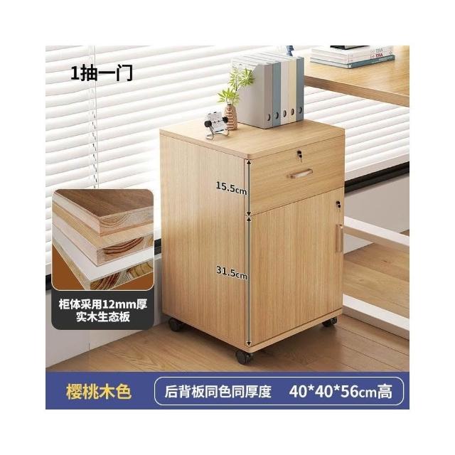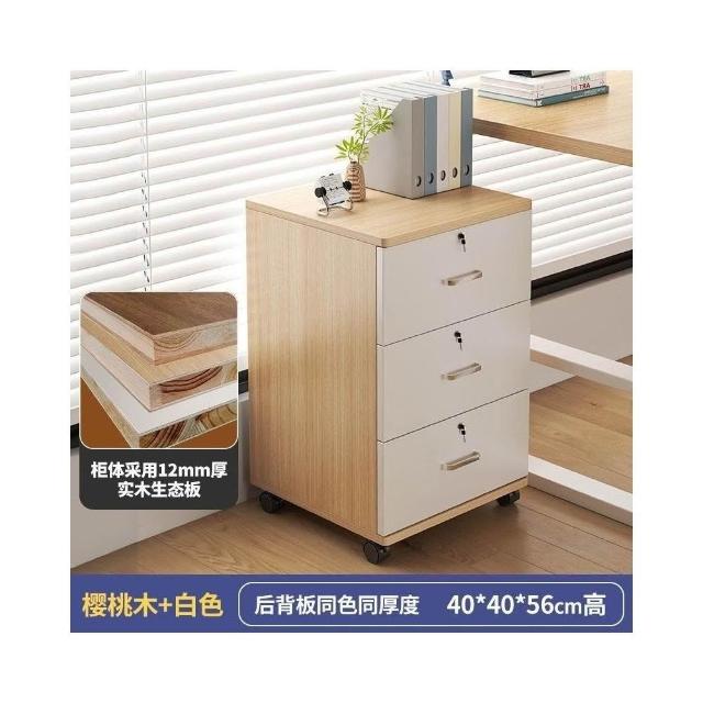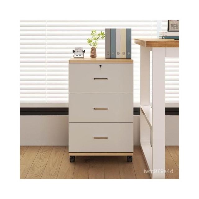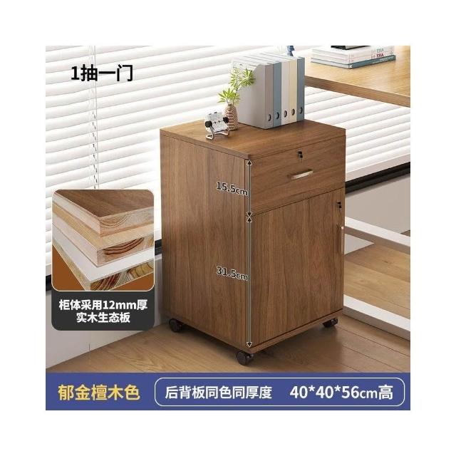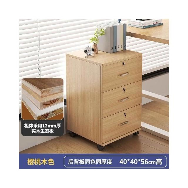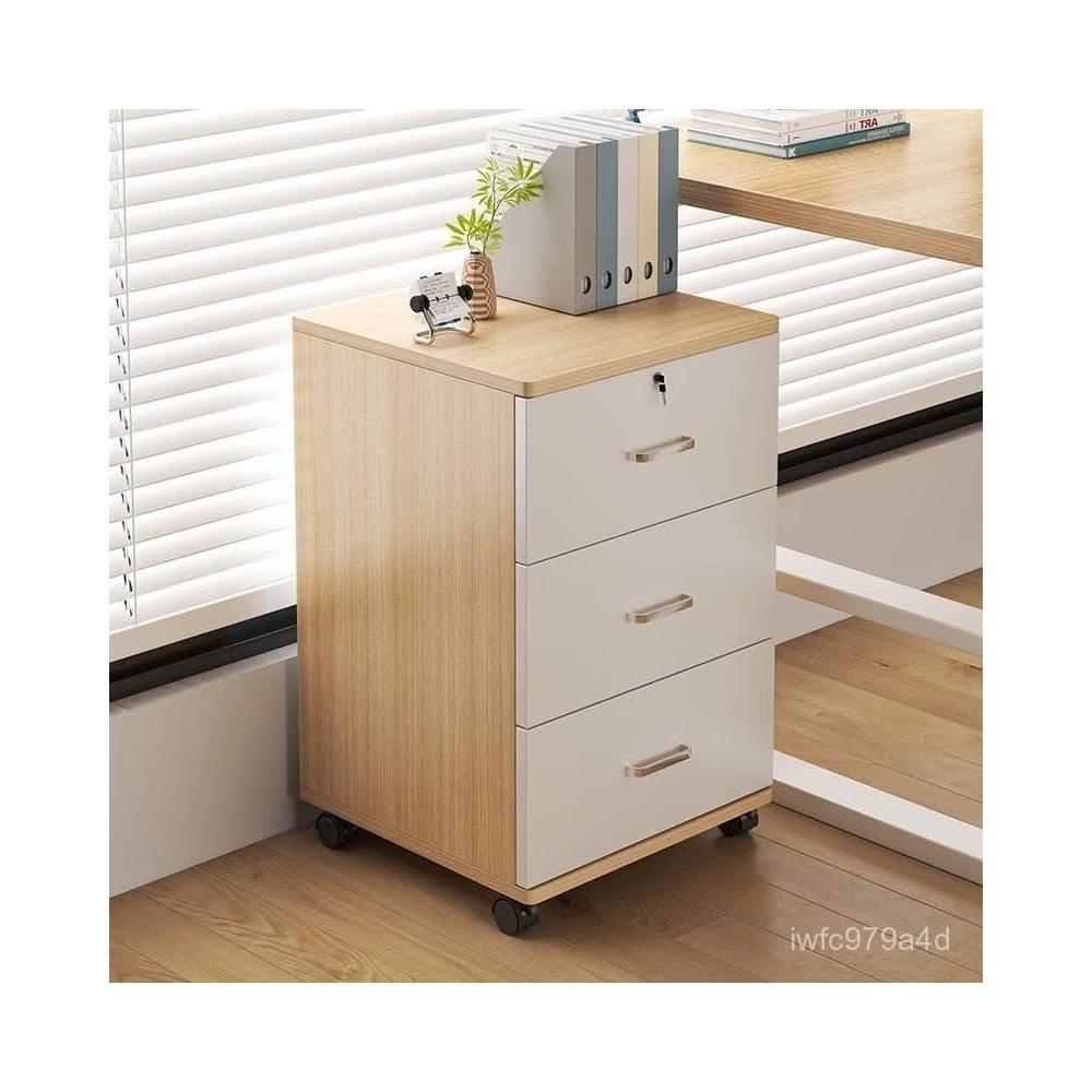 實木辦公室帶鎖資料文件櫃桌下收納家用可移動帶滑輪儲物櫃