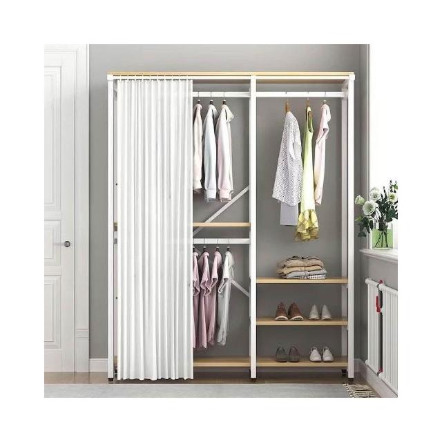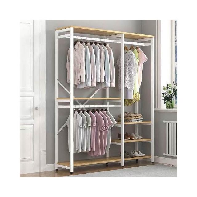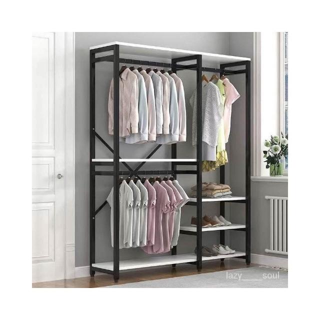 開放式衣櫃雙層掛衣架臥室掛衣架落地式傢用衣服架收納多層置物架衣櫃