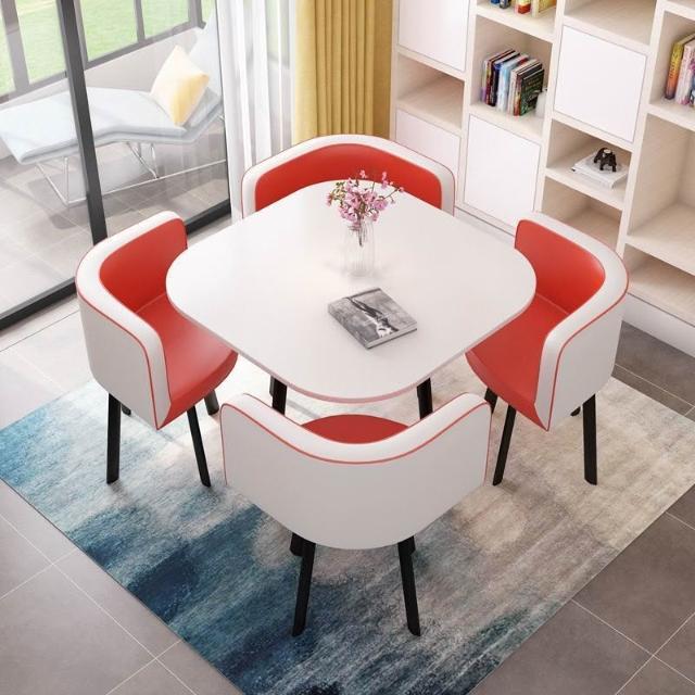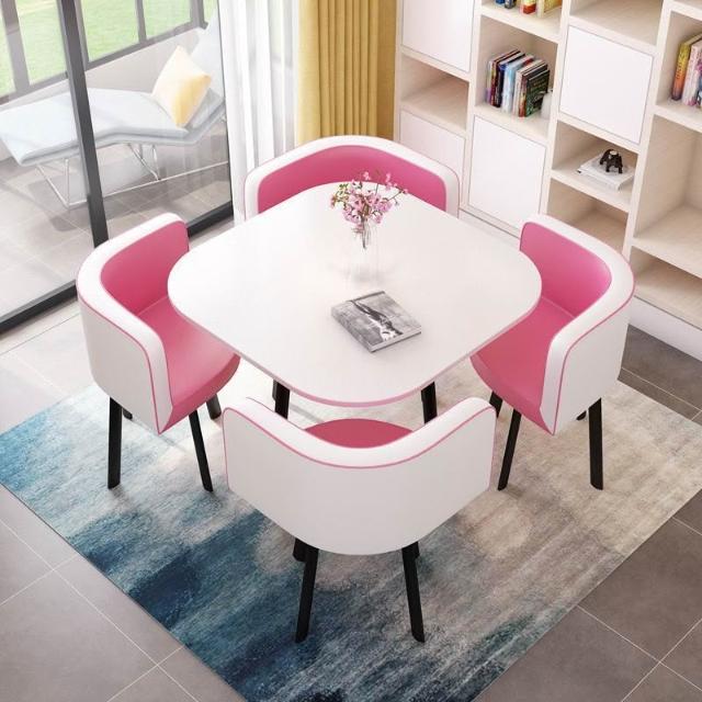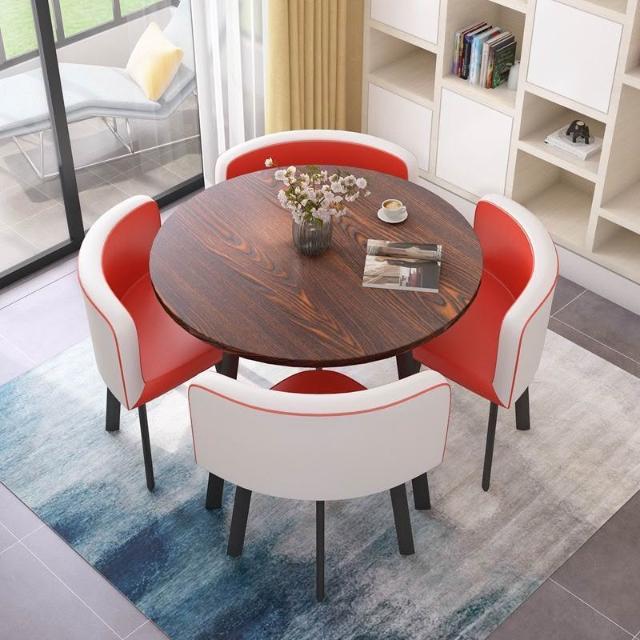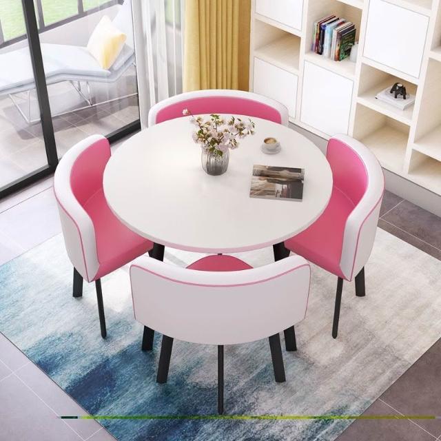廠傢直銷 優選精品談判洽談會客桌椅組閤4人特價休閒創意接待小圓桌簡約奶茶甜品店 桌椅組閤 奶茶桌 洽談桌 餐桌 JER