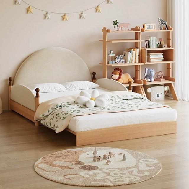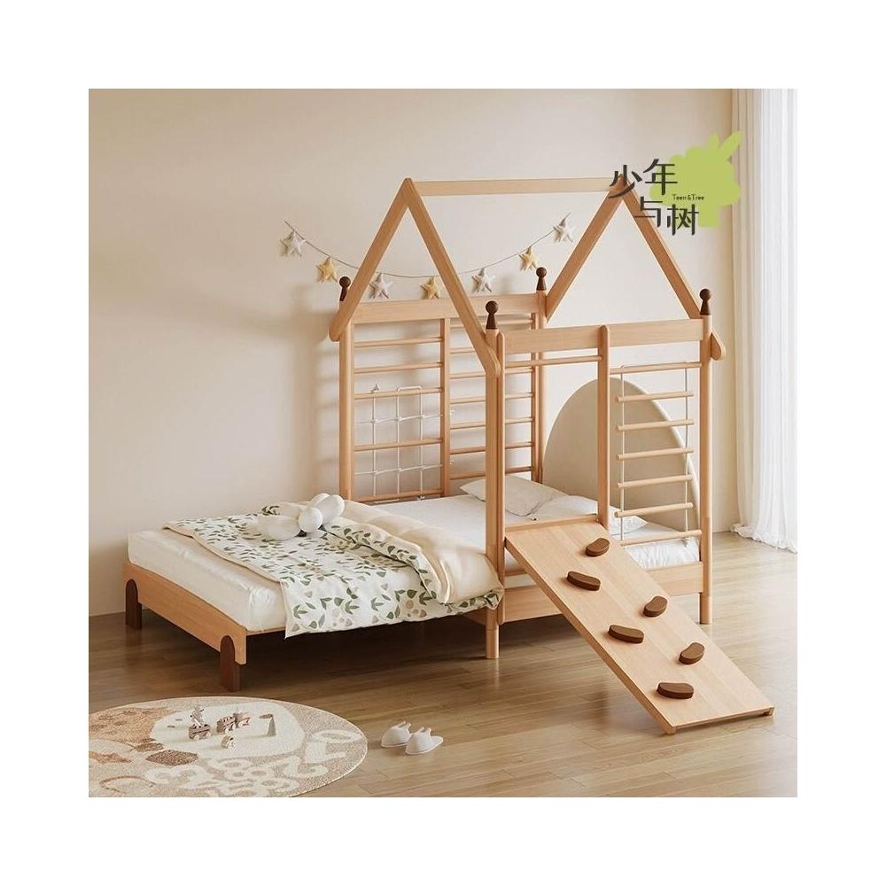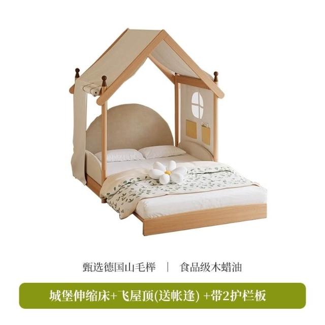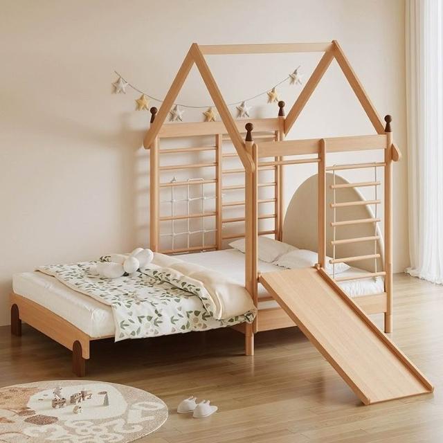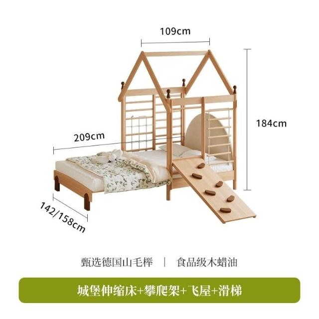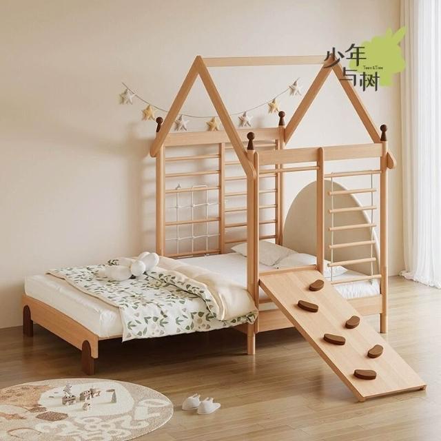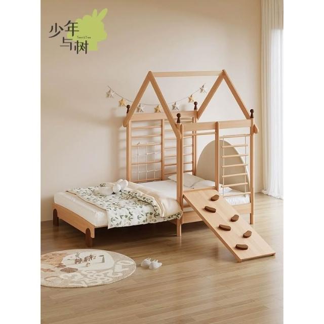 單人床 兒童床 小床 少年與樹全實木兒童床櫸木攀爬伸縮床攀爬架帶護欄男孩女孩拚接床
