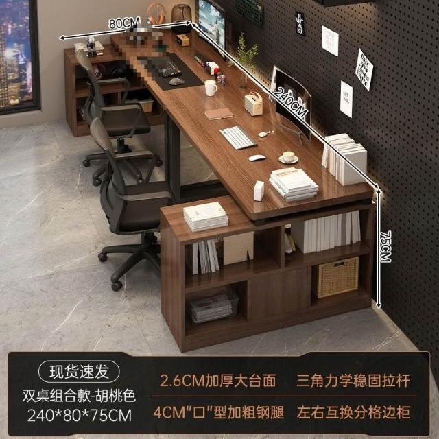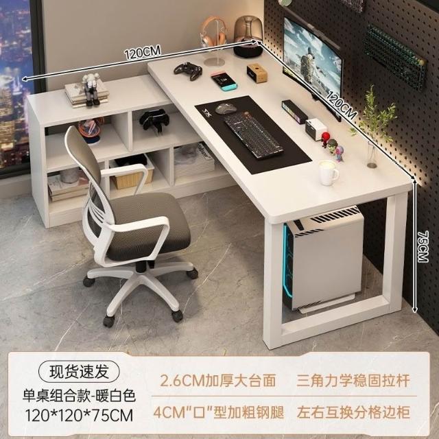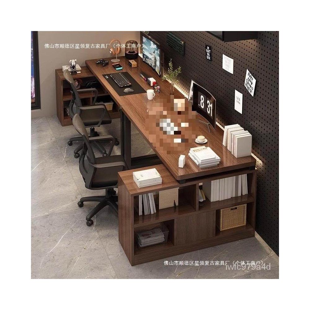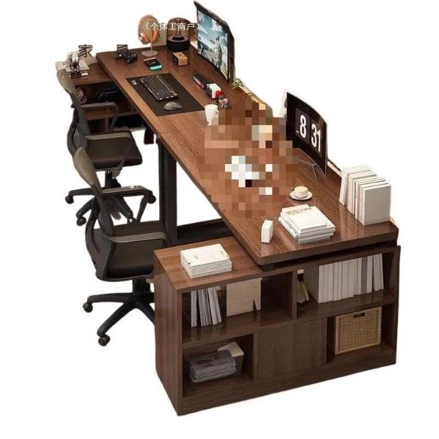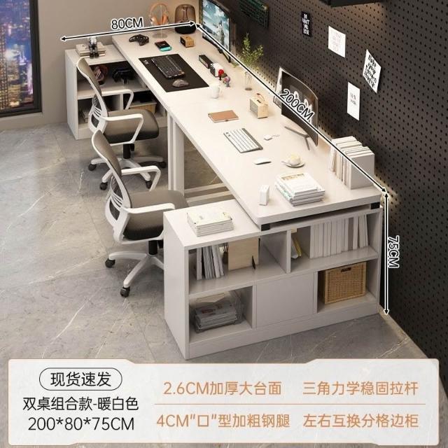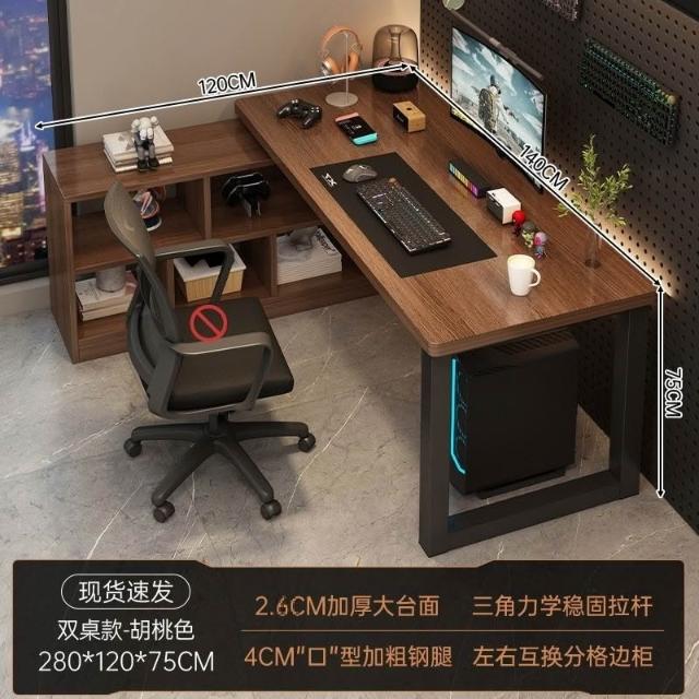 廠傢直供 新款傢用辦公桌雙人L型書桌電腦桌電競桌書架一體桌並排轉角桌子pg