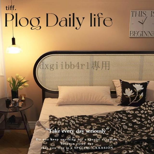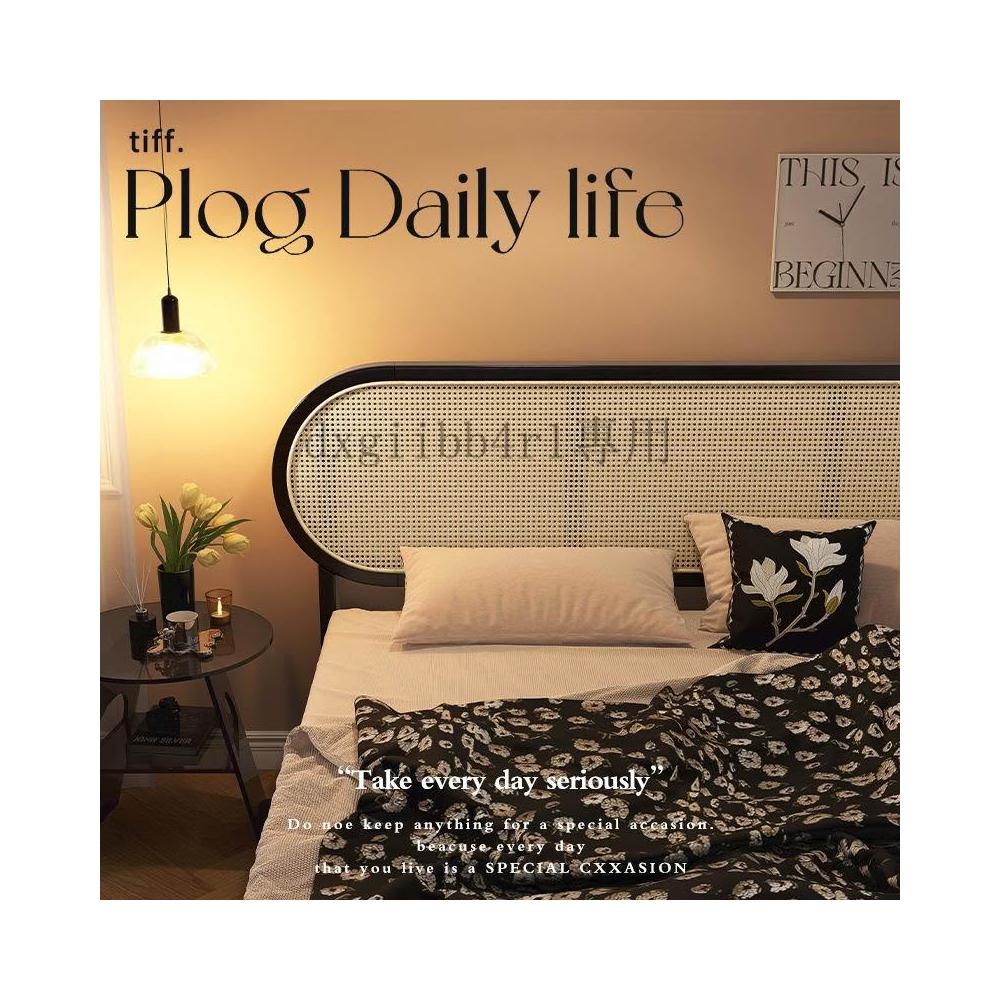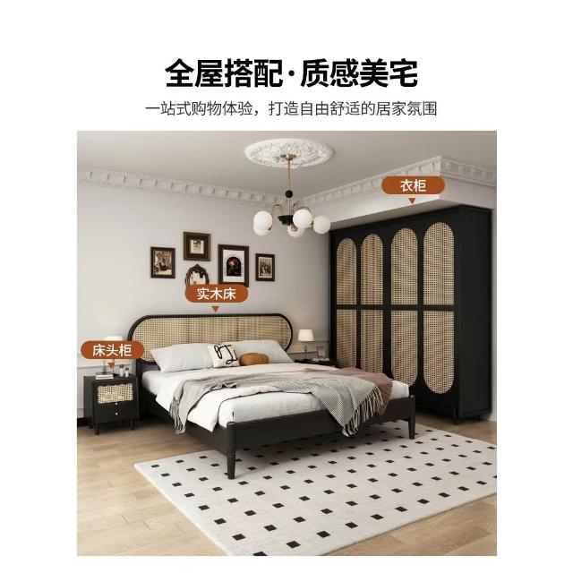 免運 廠家直銷 實木床 床架 藤編床 床 北歐實木床 實木藤編床 現代簡約 臥室侘寂風 複古風 黑色床 法式輕奢 雙人床