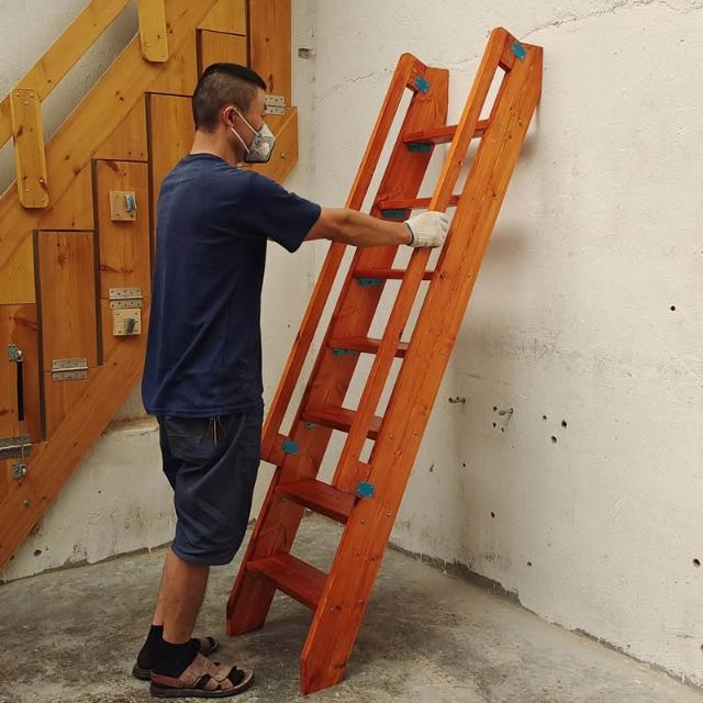 免運木梯子複式閣樓樓梯室內直梯帶扶手實木單梯木質復古一字爬梯