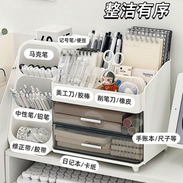 工廠直銷桌面收納盒抽屜式學生辦公室書桌文具大容量置物架多功能桌上筆筒