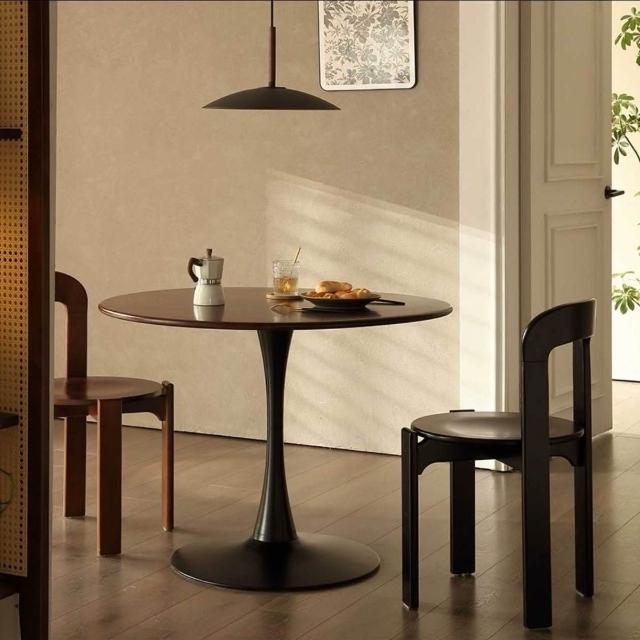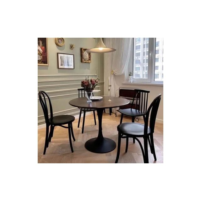 北欧复古郁金香胡桃圆形实木圆桌餐桌家用小户型咖啡阳台