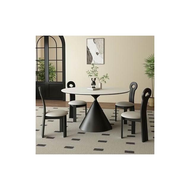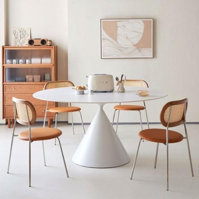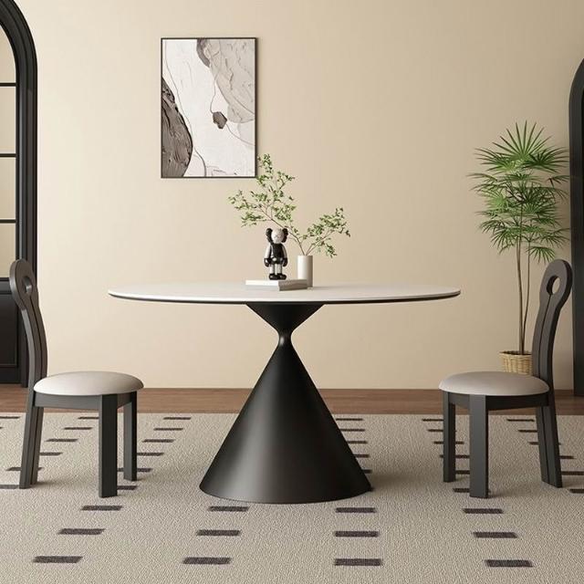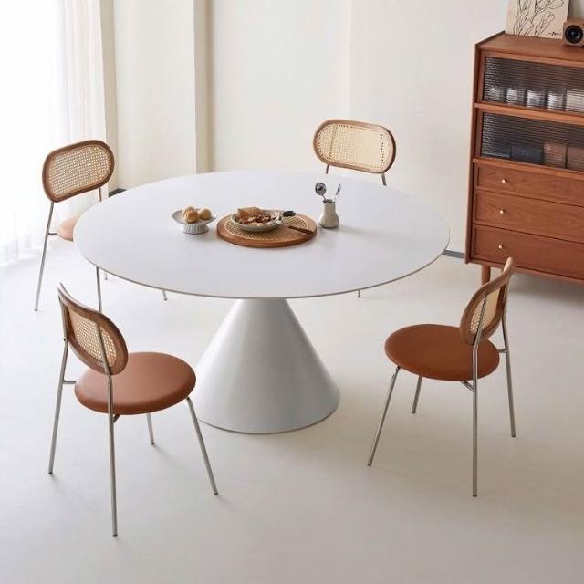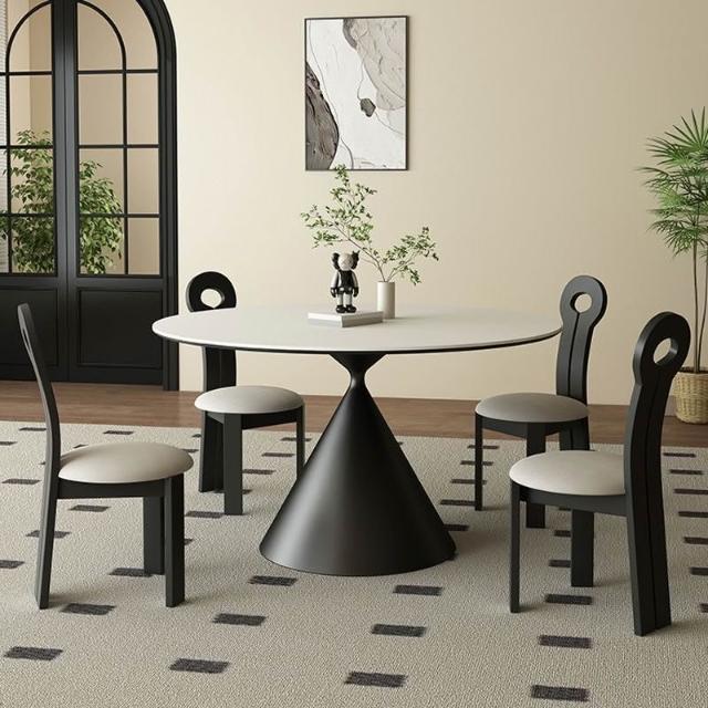 法式餐桌复古家用圆形岩板餐桌椅高端小户型意式极简现代简约圆桌
