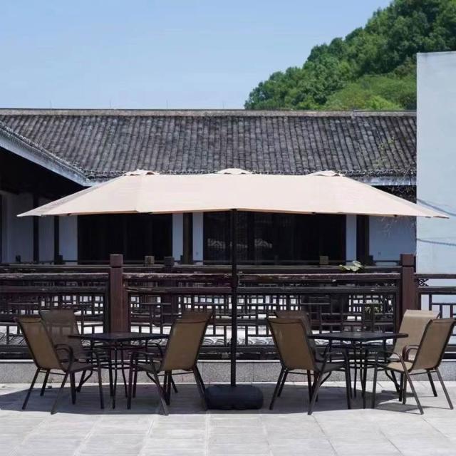 户外花园露台遮阳伞室外咖啡厅商用三头伞摆摊阳台遮阳棚网红休闲