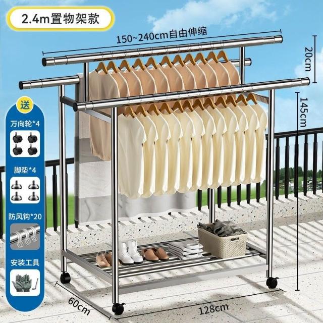 不銹鋼晾衣架落地立式家用掛衣架涼衣桿陽臺多功能折疊曬衣服室外 晾衣架 曬衣架 晾衣桿 衣架 掛衣架