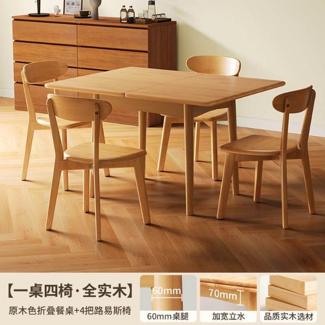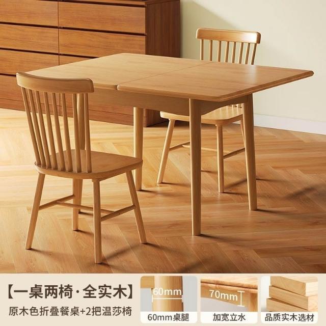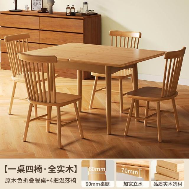 可折疊餐桌 實木桌 桌椅 北歐實木餐桌現代簡約長方形日式桌椅組閤 折疊桌 實木餐桌 傢用飯桌長方形餐桌椅組閤壹桌四椅