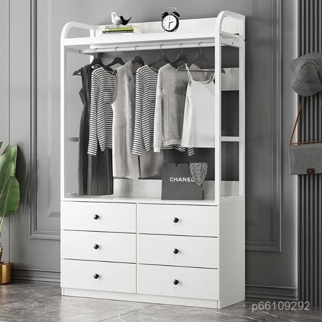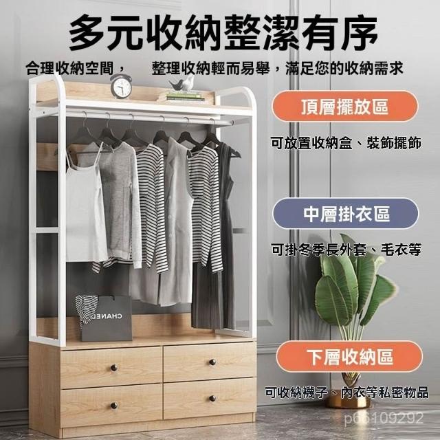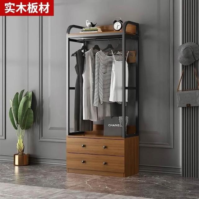 簡易衣櫃 衣櫥 衣櫃衣櫥 衣帽架 實木落地掛衣架帶抽屜家用臥室掛衣架客廳收納開放式北歐