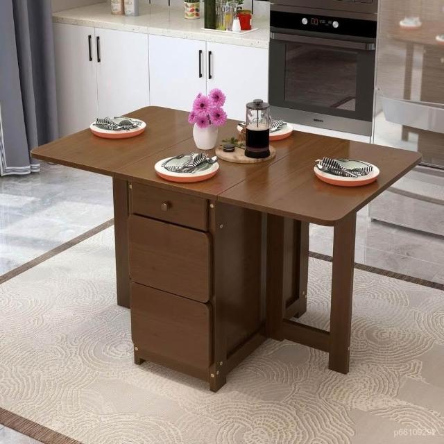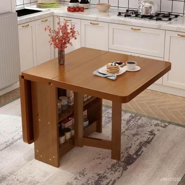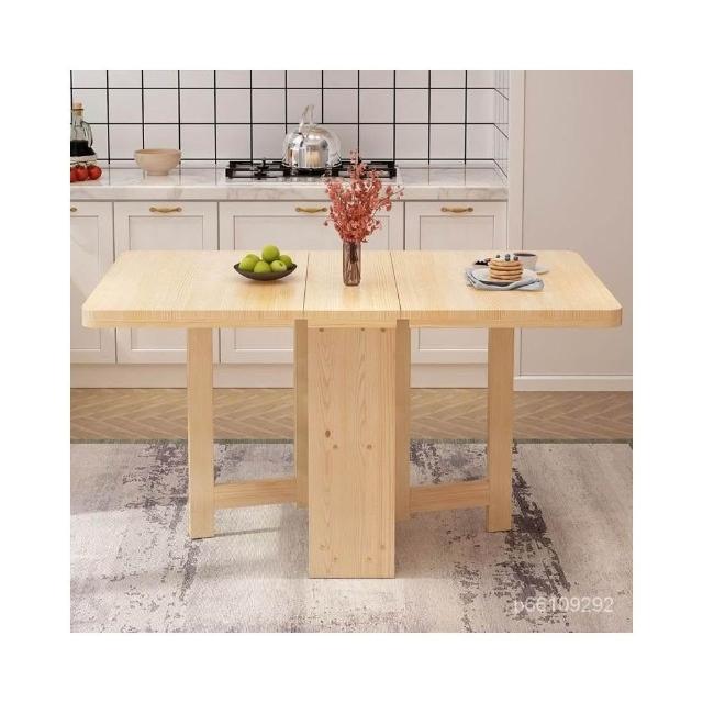鬆木折疊餐桌小戶型簡約現代折疊長方形多功能家具喫飯餐桌