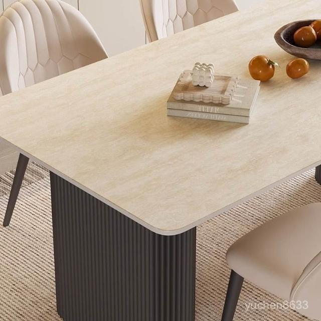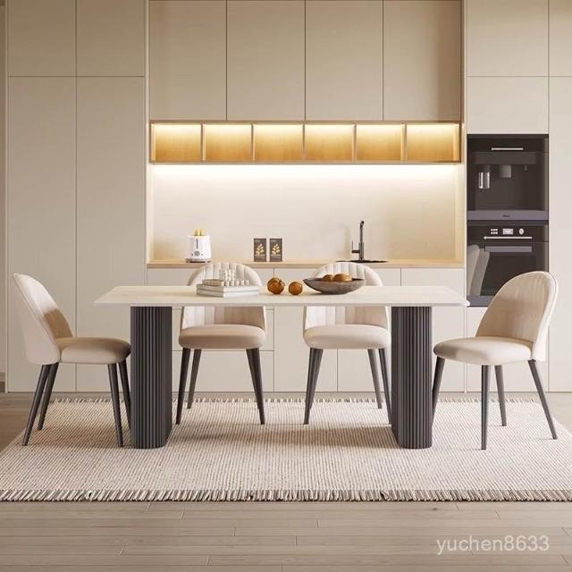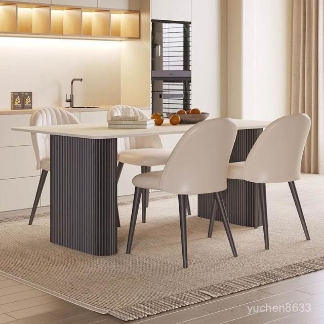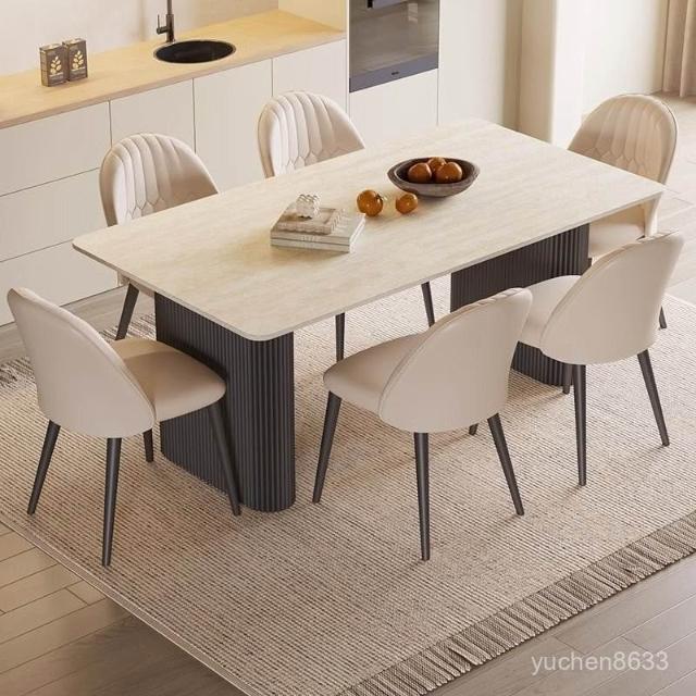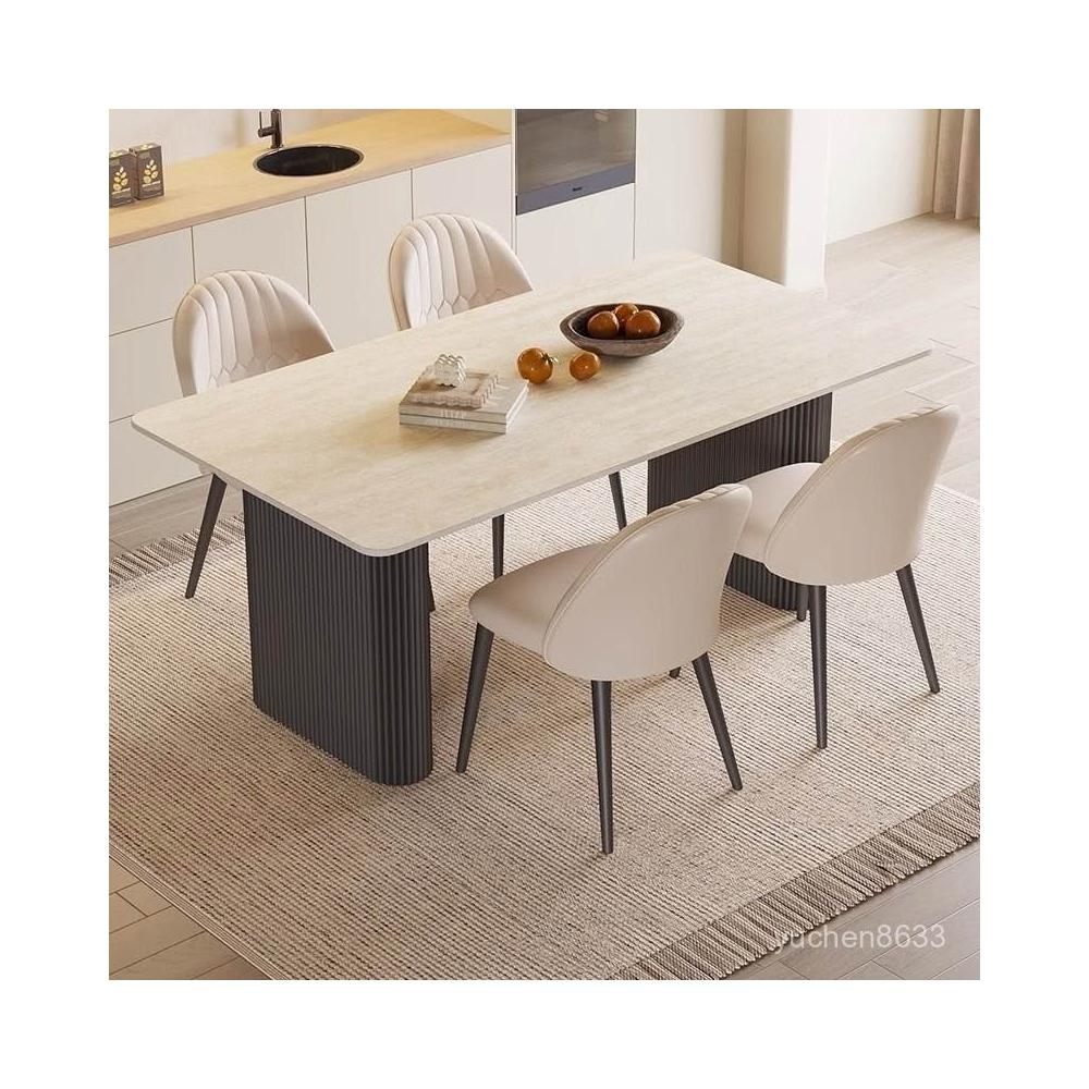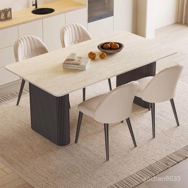可開統編 含稅/免運 中古風洞石巖闆餐桌小戶型家用客廳現代簡約輕奢設計感餐桌椅組閤 OWQJ
