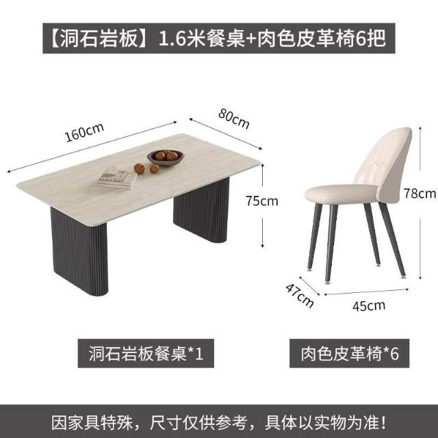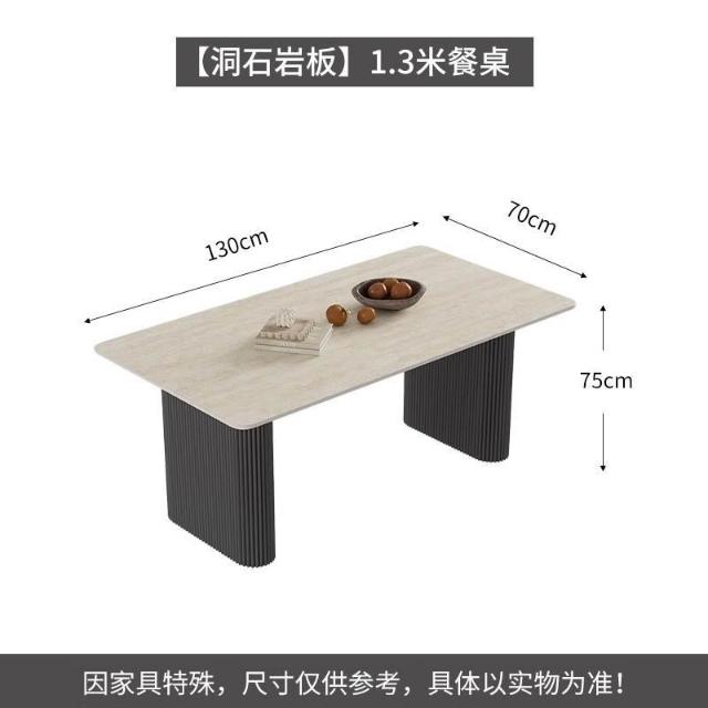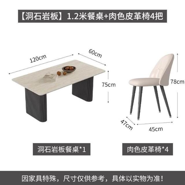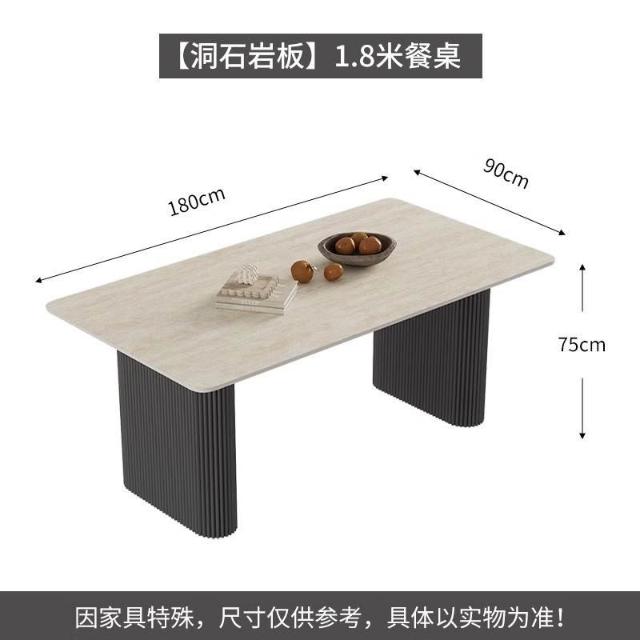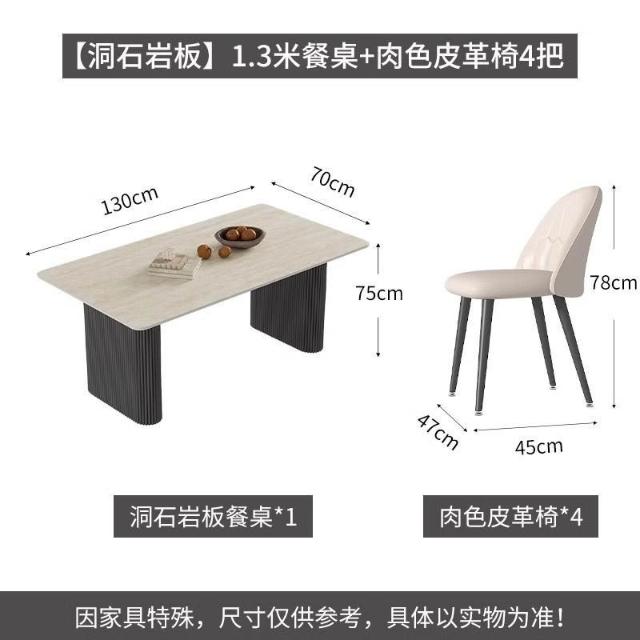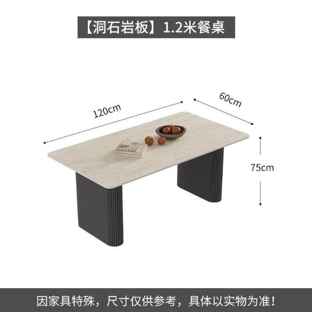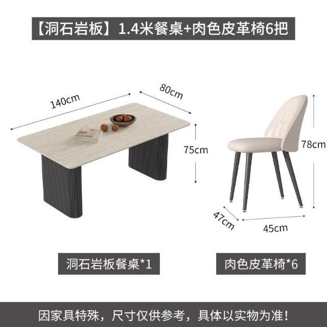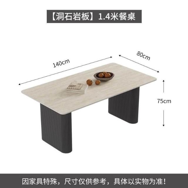 可開統編 含稅/免運 中古風洞石巖闆餐桌小戶型家用客廳現代簡約輕奢設計感餐桌椅組閤 OWQJ