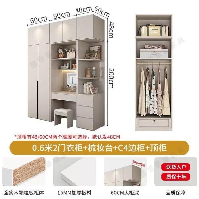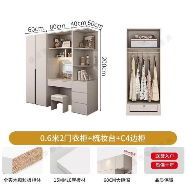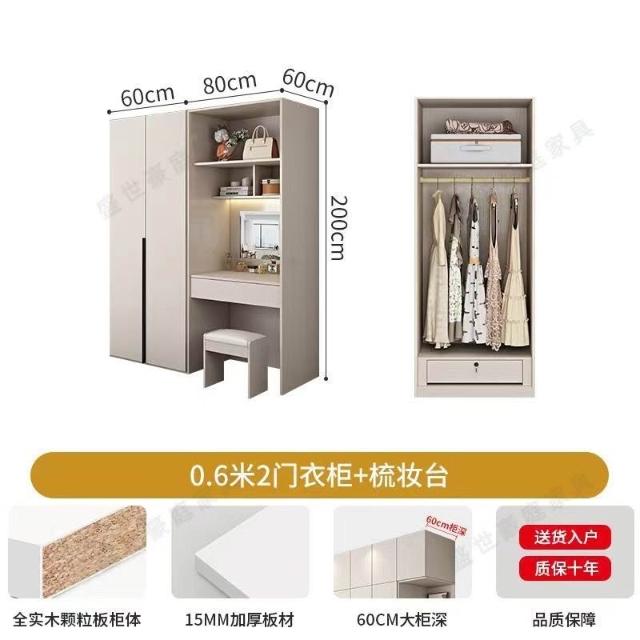 全臺可安裝 含稅/免運 免漆顆粒闆臥室家用衣櫃簡約現代奶油風櫃子輕奢整體梳妝臺大衣櫥 XPHW
