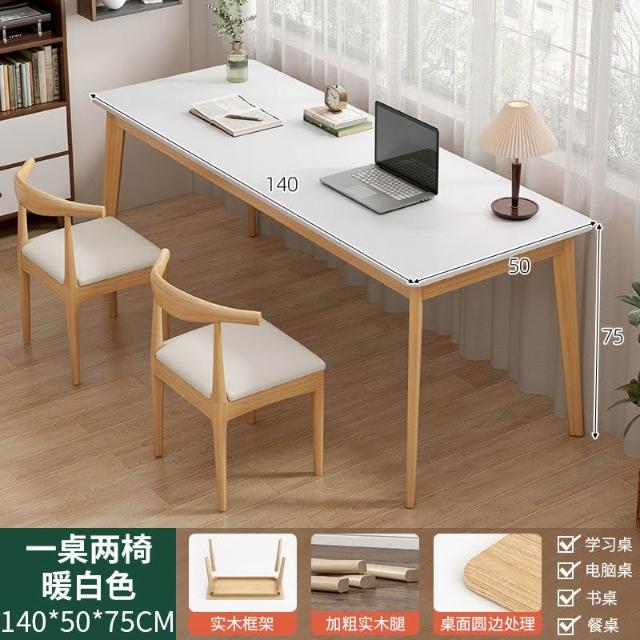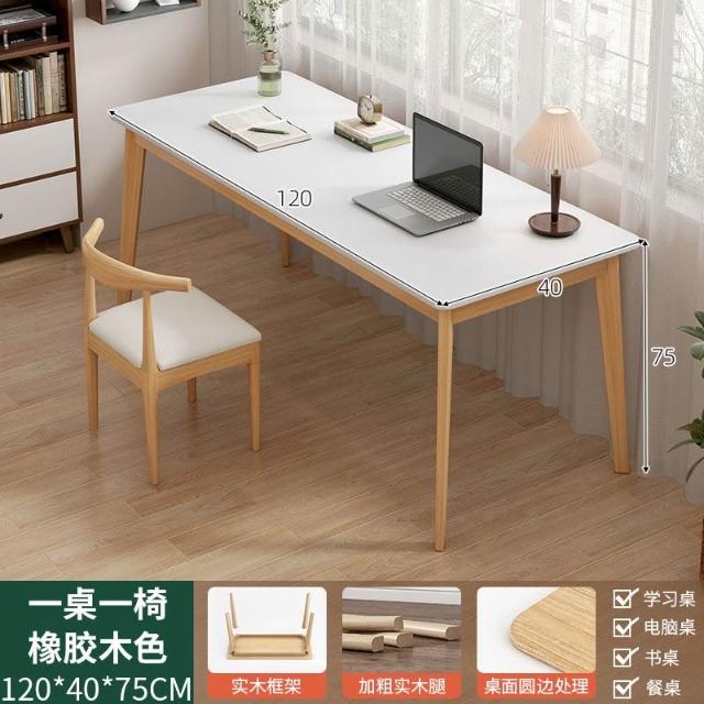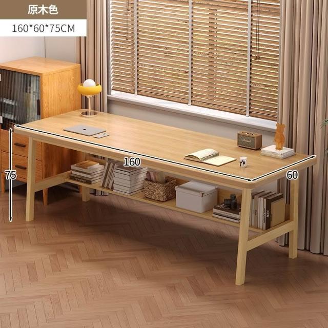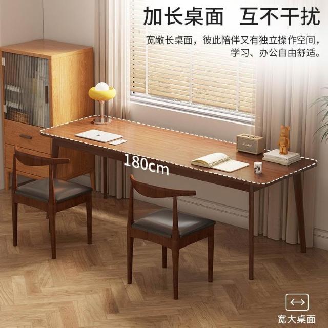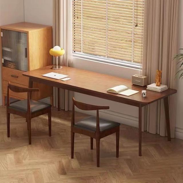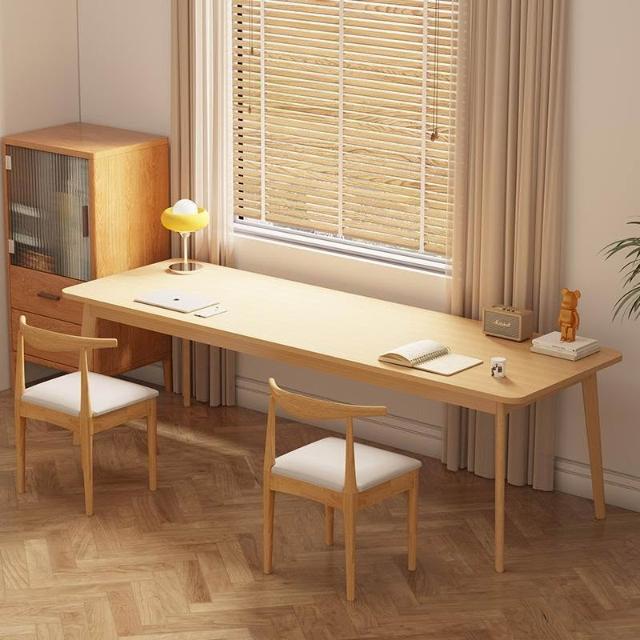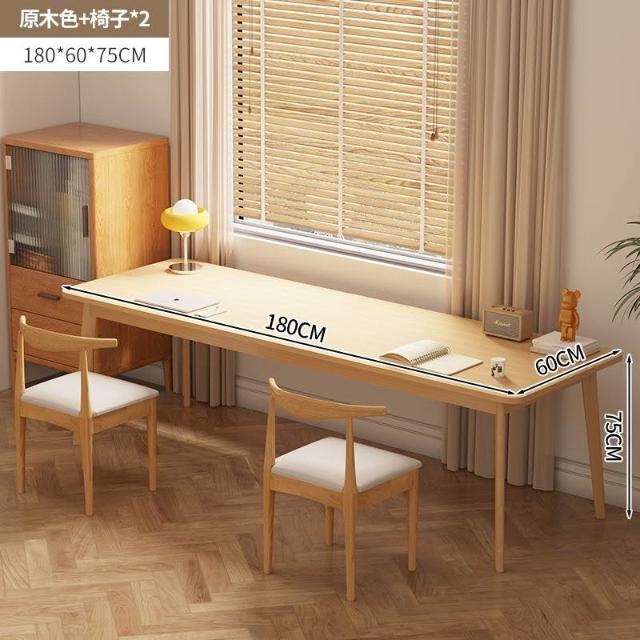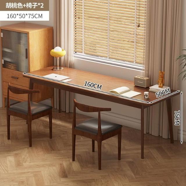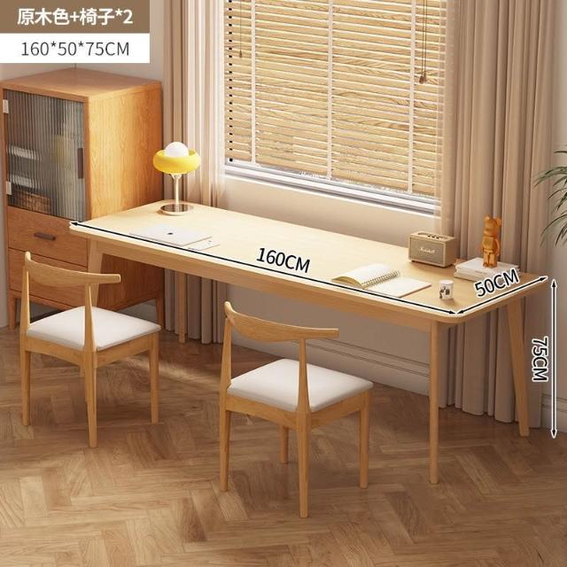家用卧室辦公桌 雙人書桌 長條桌 實木腿雙人桌 靠窗靠牆窄桌子 工作台桌椅 桌子 電腦桌 木桌 木椅