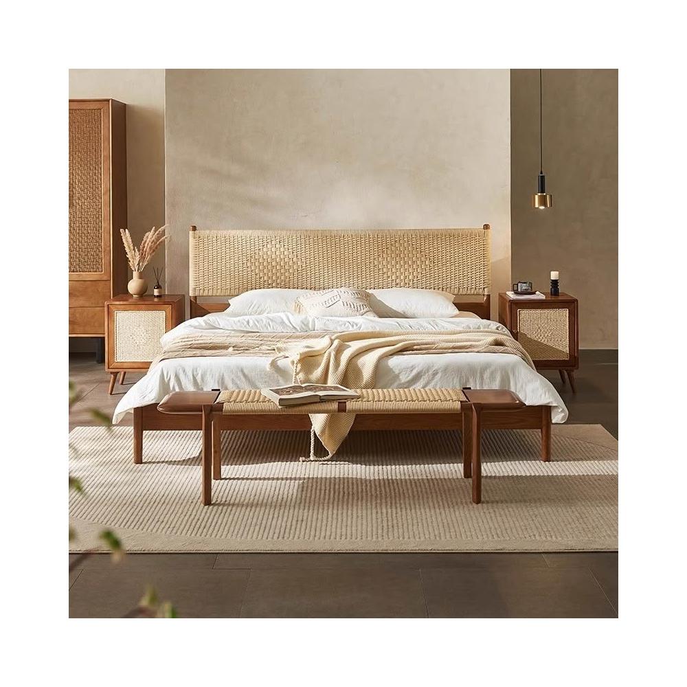 東南亞風格實木床1.8米藤編雙人床酒店民宿藤藝家具設計師款藤床