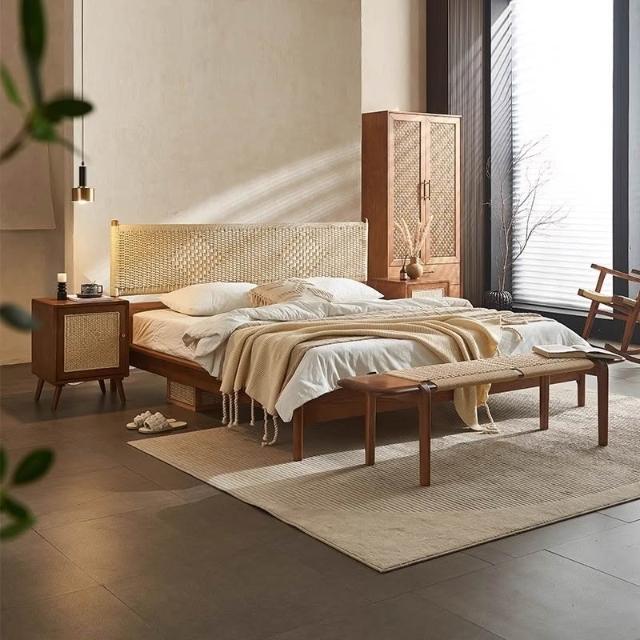東南亞風格實木床1.8米藤編雙人床酒店民宿藤藝家具設計師款藤床