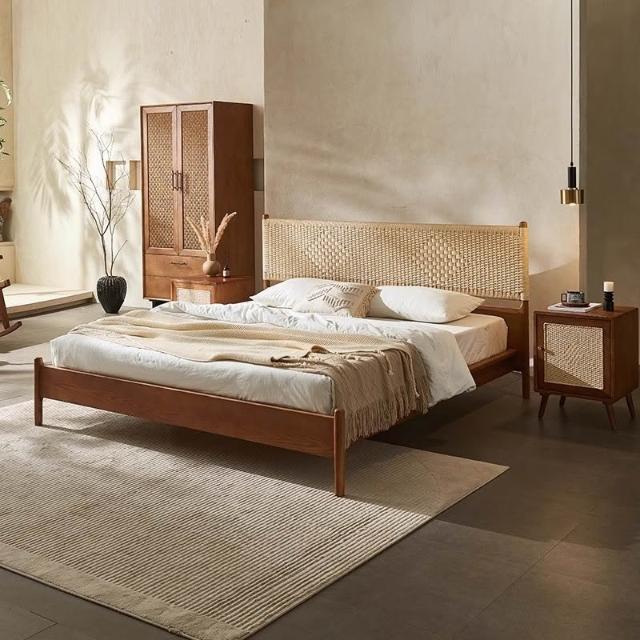 東南亞風格實木床1.8米藤編雙人床酒店民宿藤藝家具設計師款藤床