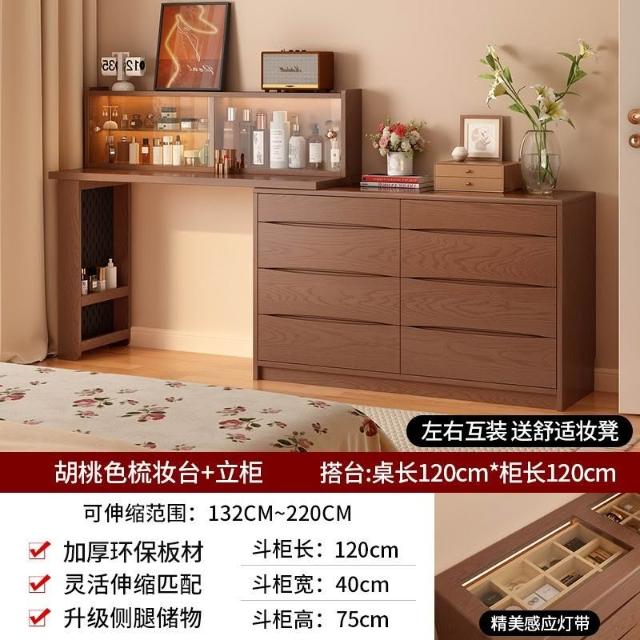鬥櫃梳妝臺 免運#可上門安裝 一體臥室現代簡約化妝桌床尾收納櫃化妝臺轉角書桌實木