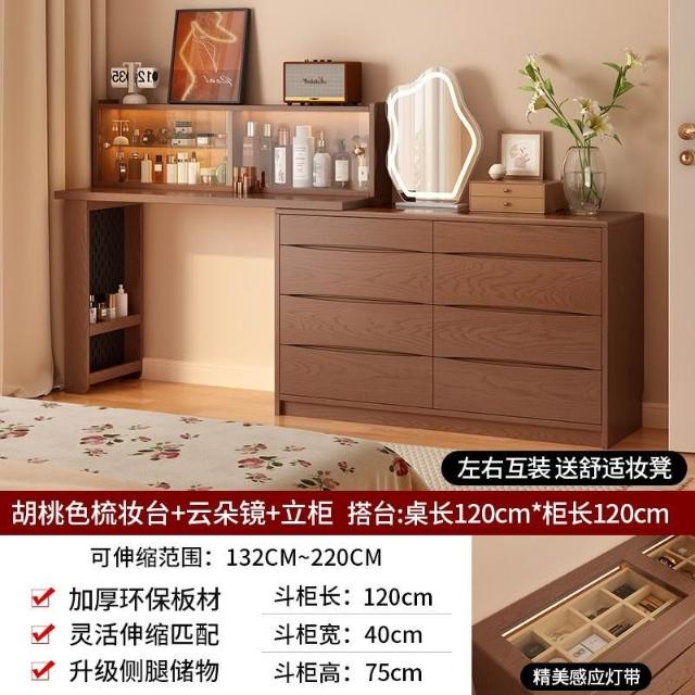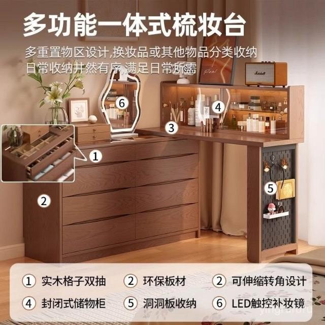 鬥櫃梳妝臺 免運#可上門安裝 一體臥室現代簡約化妝桌床尾收納櫃化妝臺轉角書桌實木