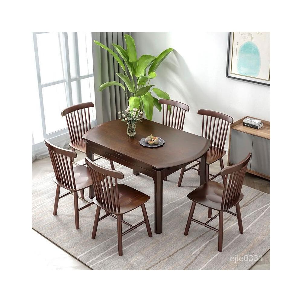 爆款熱賣 工廠直營 北歐實木折疊餐桌可變圓桌現代簡約餐桌椅組閤伸縮傢用喫飯桌子 EKXK