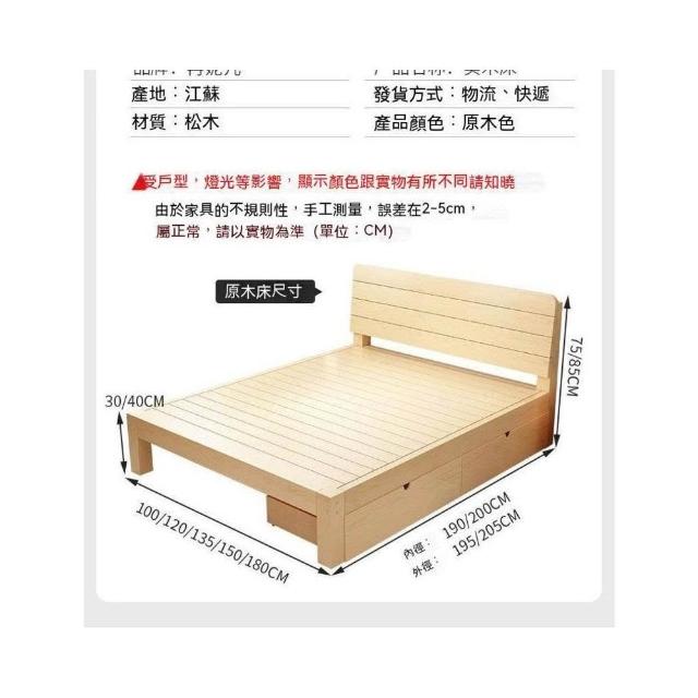 實木床 松木 雙人床 經濟型 現代 簡約 床架 單人加大床架 6尺床架