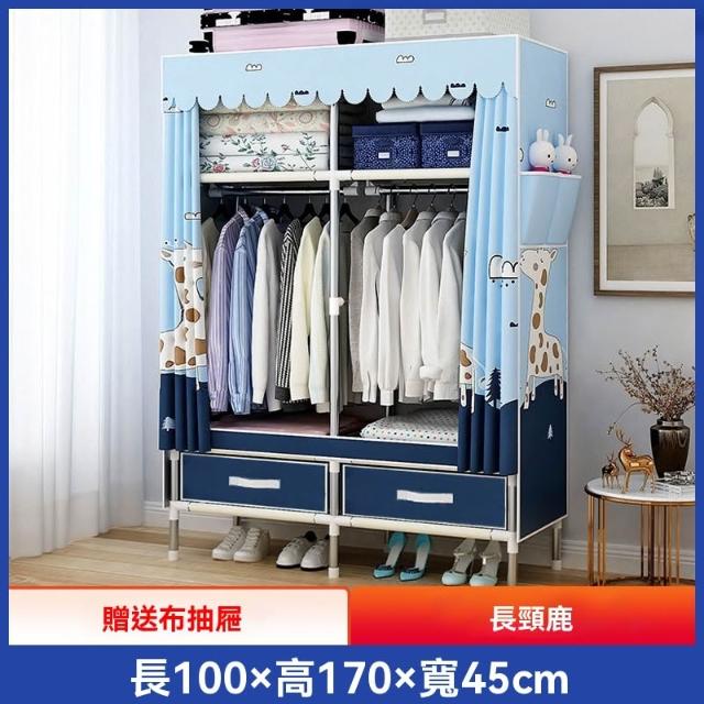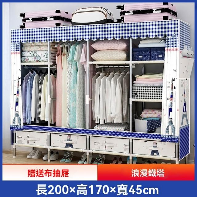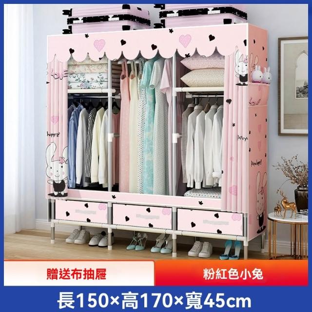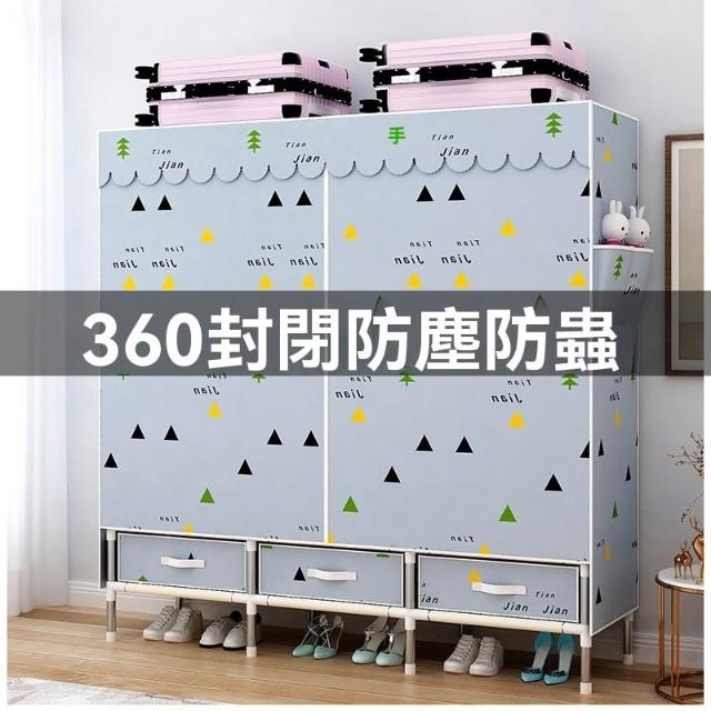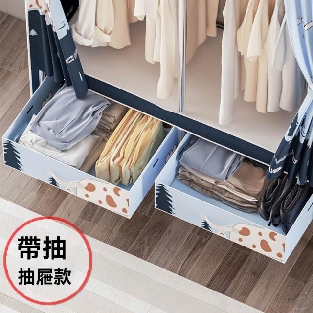 布衣櫃 免安裝摺叠簡易挂衣櫃 布藝抽屜 百搭組裝儲物 16MM鋼管加厚衣櫥 雙人收納衣櫃 簡約衣櫃 可愛清新衣櫃