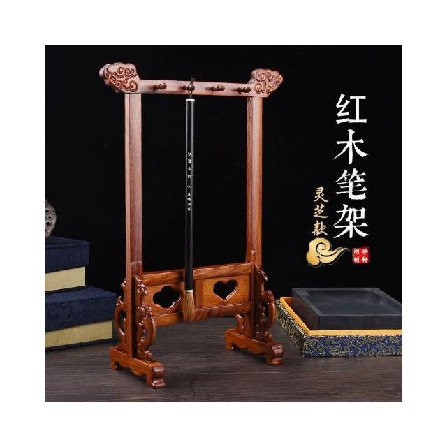 紅木毛筆筆架非洲酸枝木書法用品實木制毛筆架小號靈芝八針筆龍全
