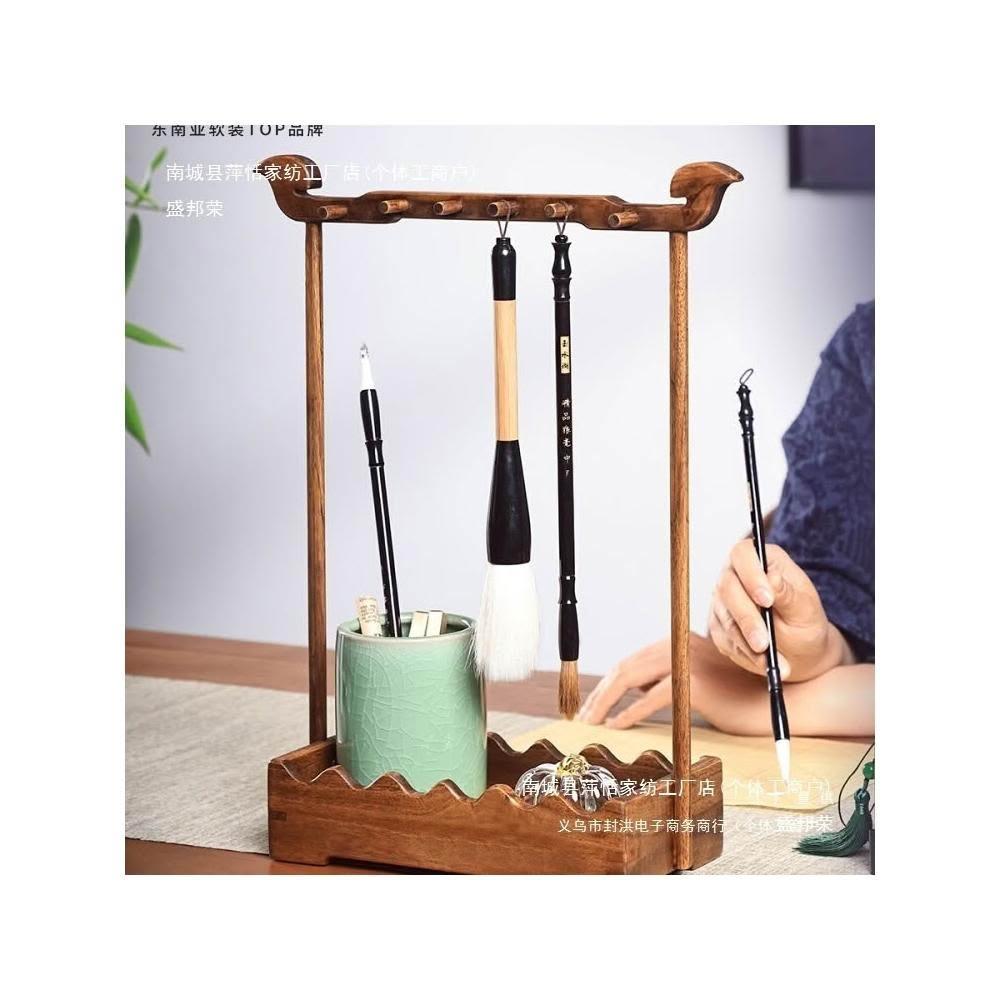 實木毛筆筆架古風掛架文房書法收納置物架文昌毛筆架筆掛絹花