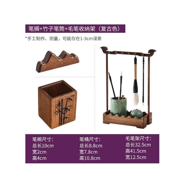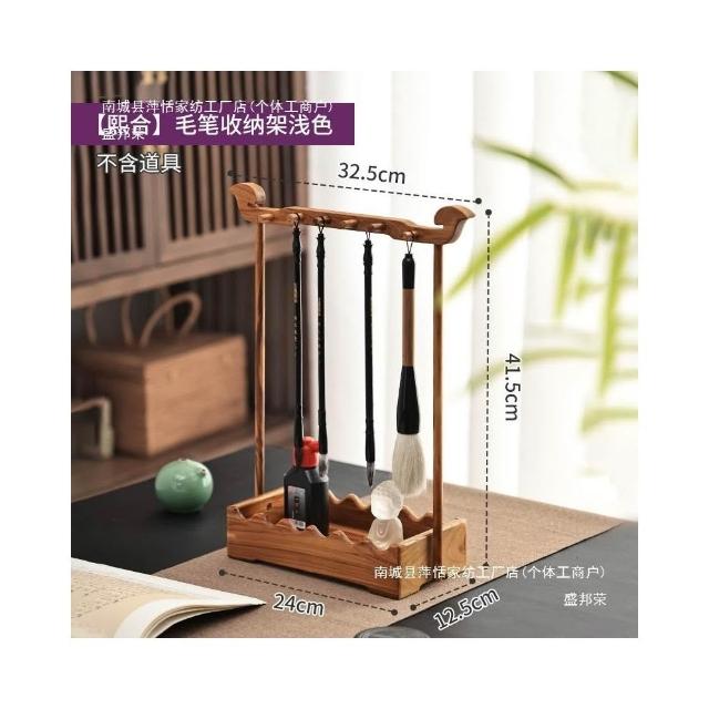 實木毛筆筆架古風掛架文房書法收納置物架文昌毛筆架筆掛絹花