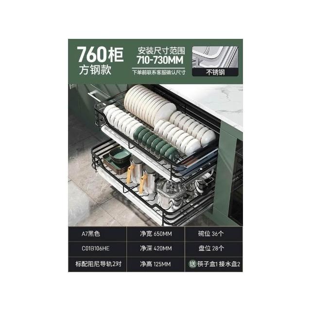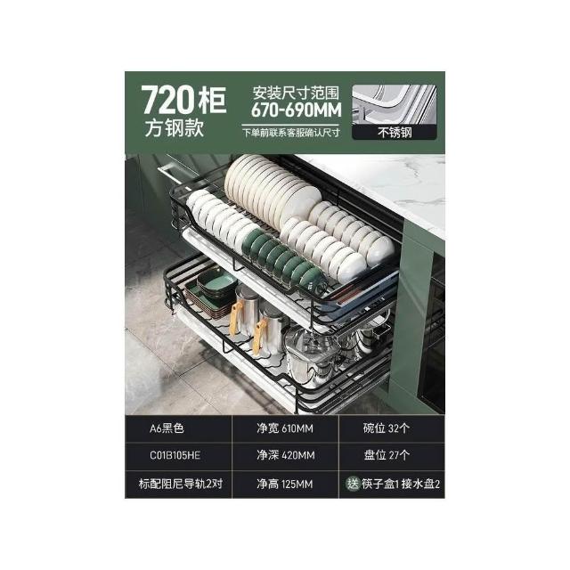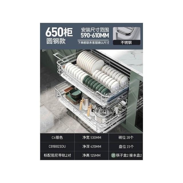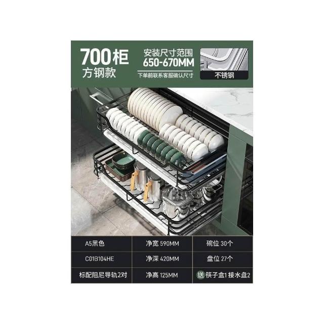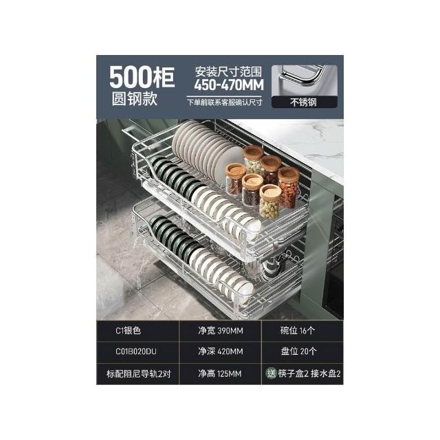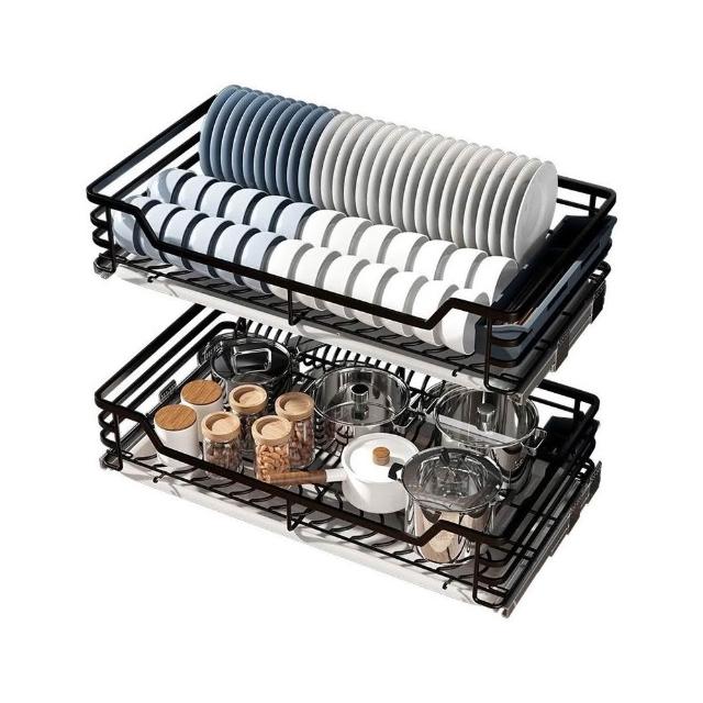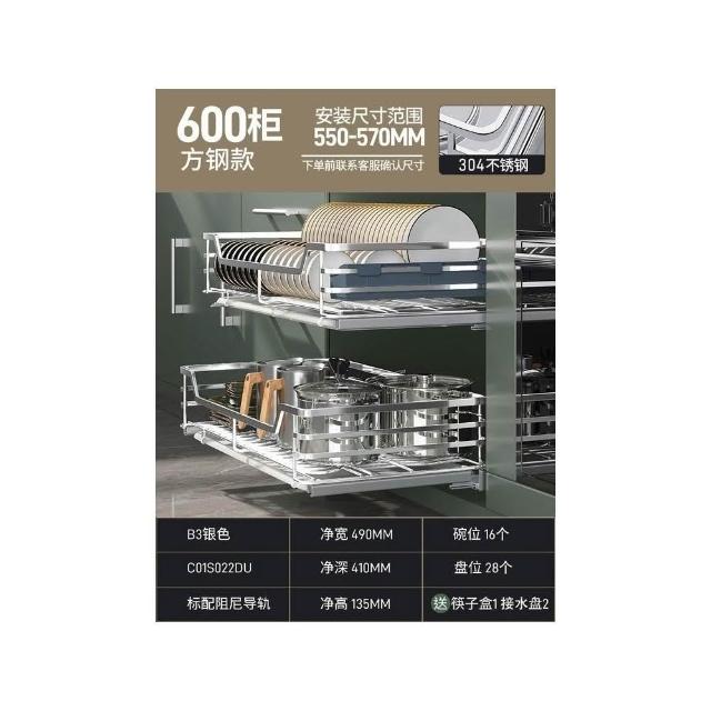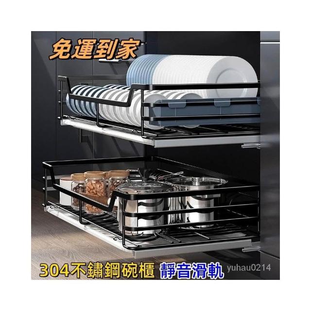 靜音軌道 品質保證 爾沫廚房拉籃雙層內304不銹鋼內置收納碗架抽屜式碗籃調味碗碟櫃 廚房收納架 廚具收納 開門式