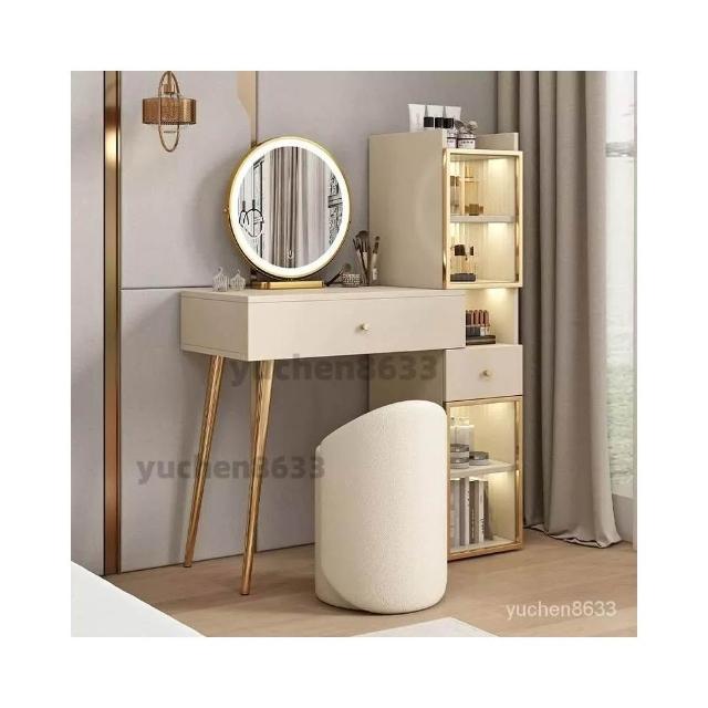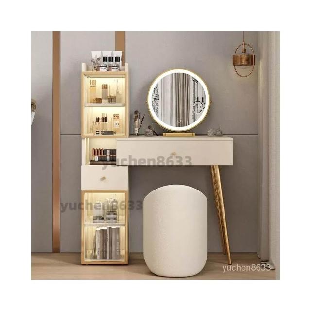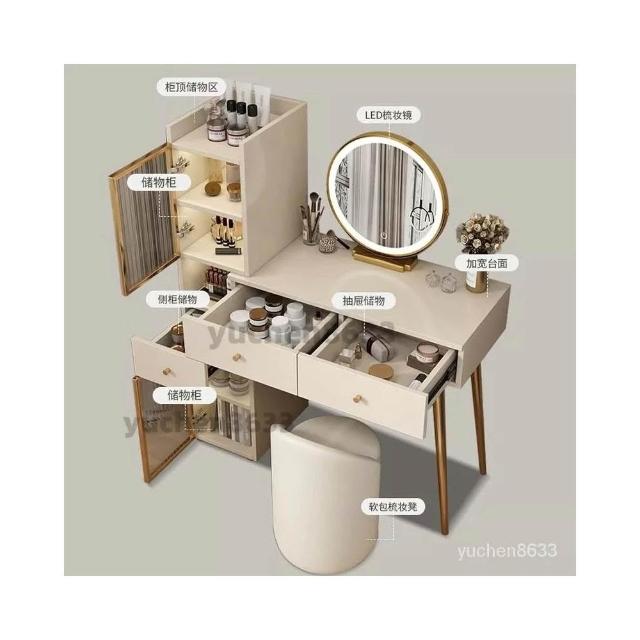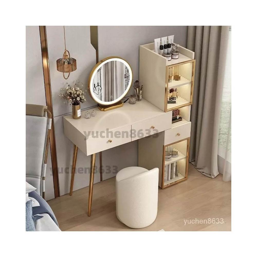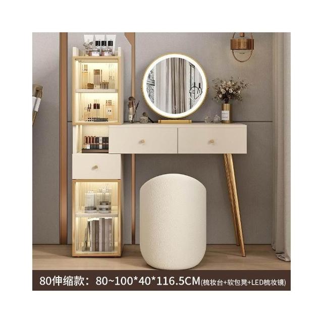 伸縮梳妝臺 小戶型化妝桌 臥室輕奢出租屋收納櫃鬥櫃一體伸縮櫃 化妝桌 梳妝台 梳妝臺 化妝椅