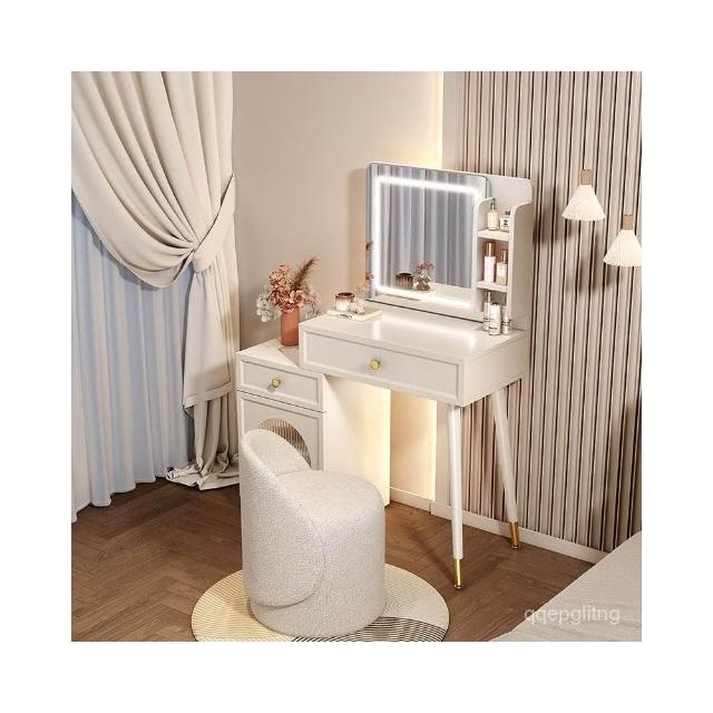 奶油風梳妝臺臥室現代簡約收納櫃小戶型網紅化妝臺一體伸縮化妝桌梳妝桌 化妝櫃 化妝臺