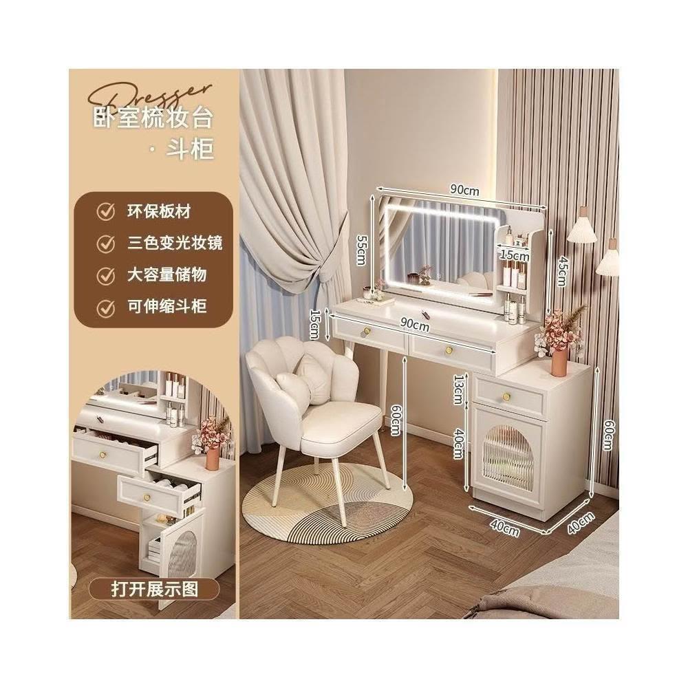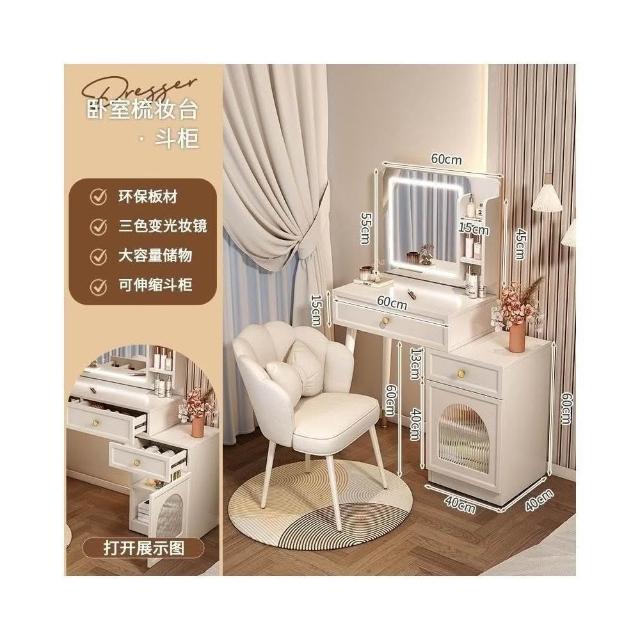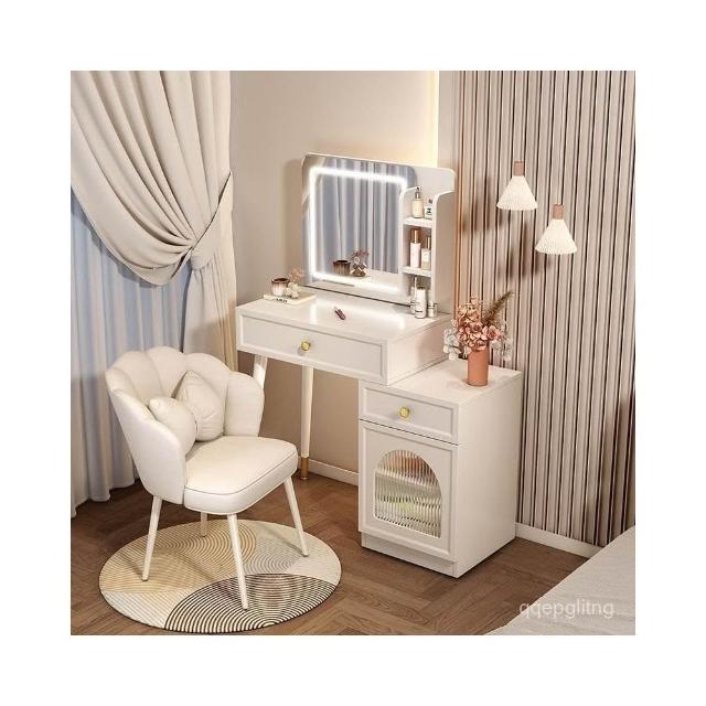 奶油風梳妝臺臥室現代簡約收納櫃小戶型網紅化妝臺一體伸縮化妝桌梳妝桌 化妝櫃 化妝臺