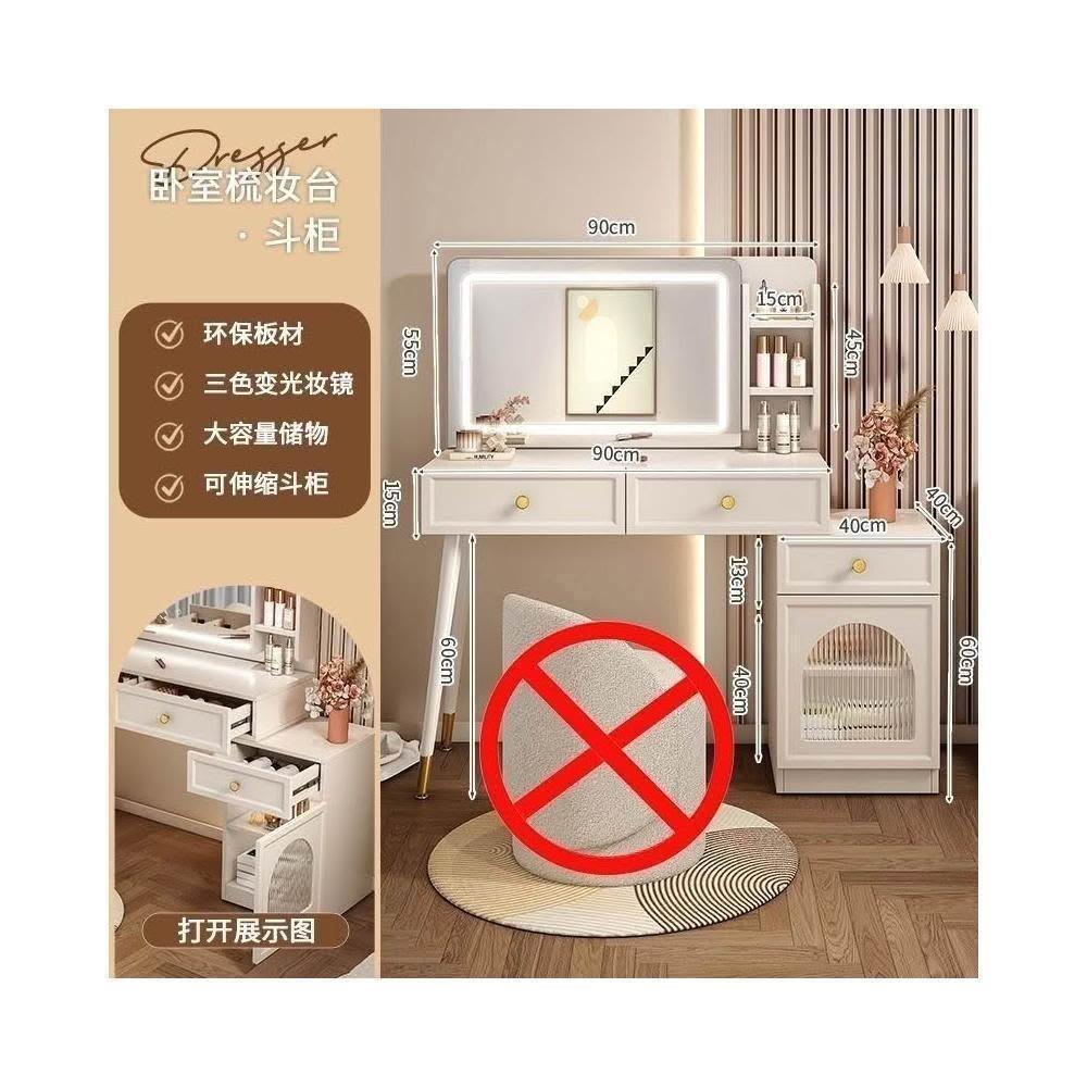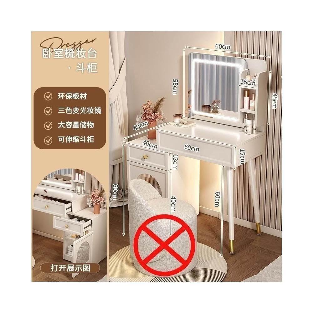 - 帶燈鏡+多格儲物櫃,妝護更省心