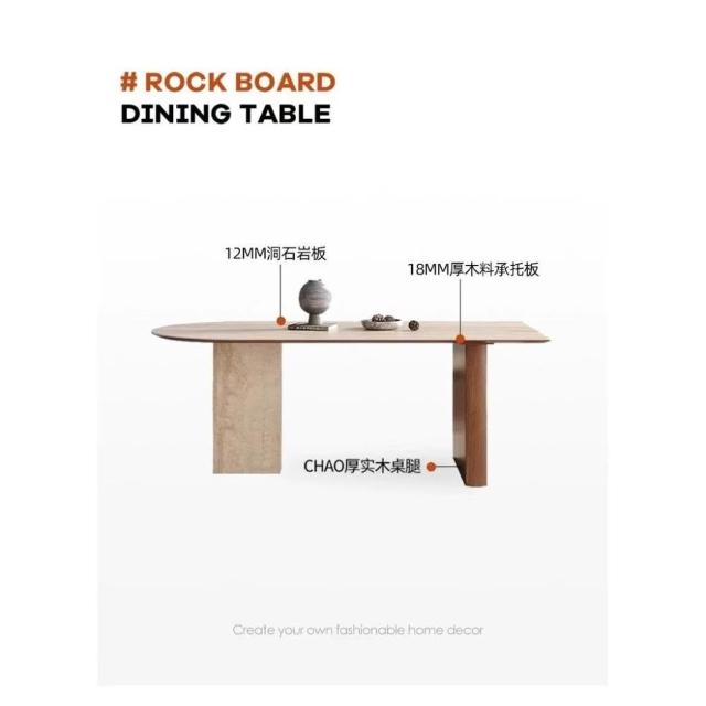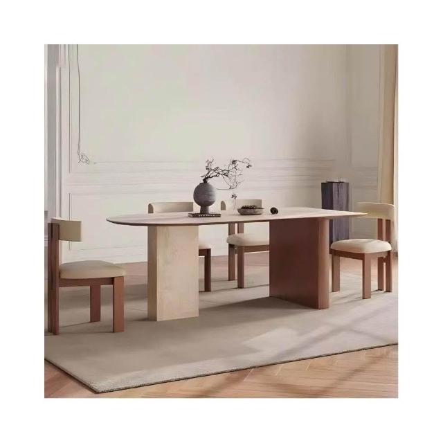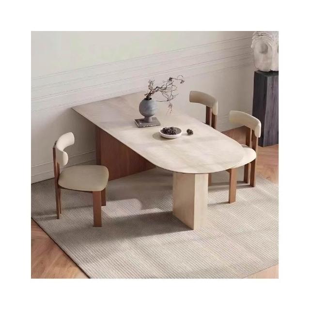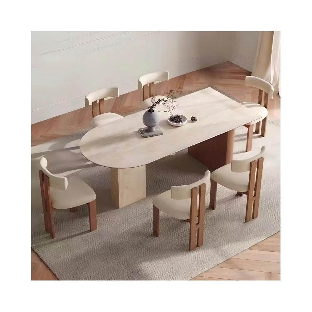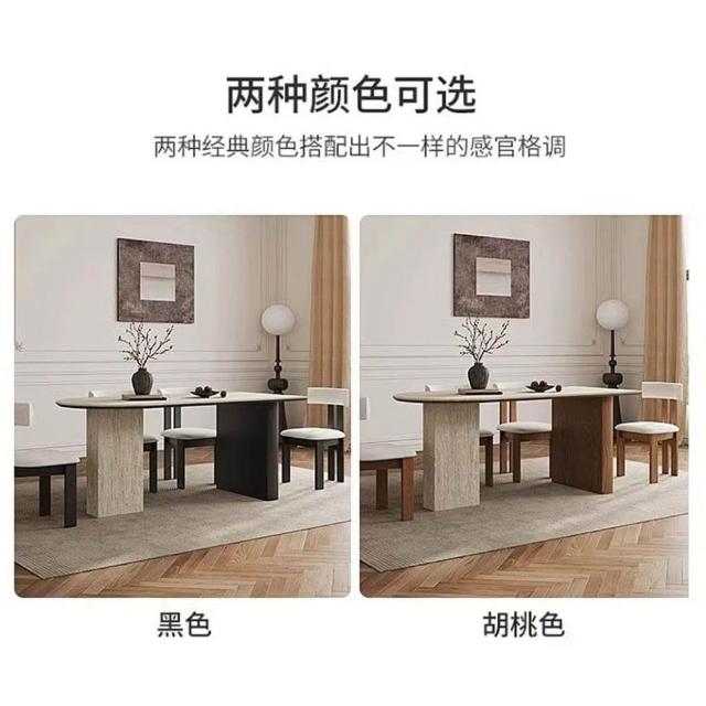 法式復古風餐桌 實木洞石巖板餐桌 半圓餐桌椅組合 小戶型客廳橢圓形飯桌