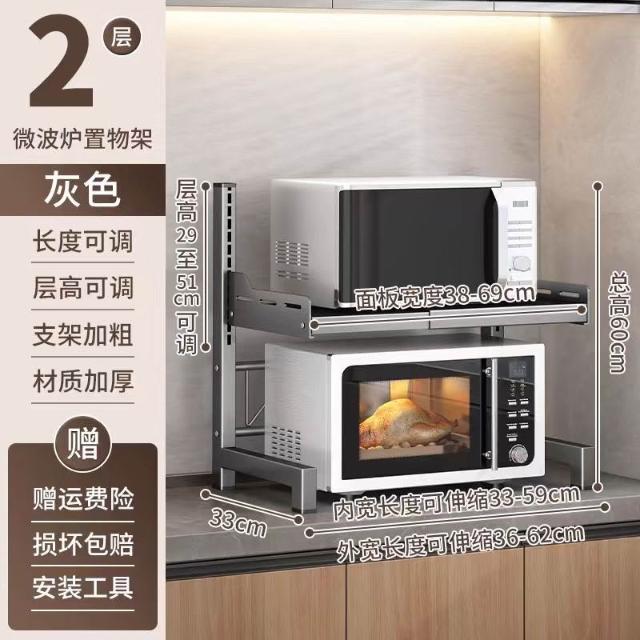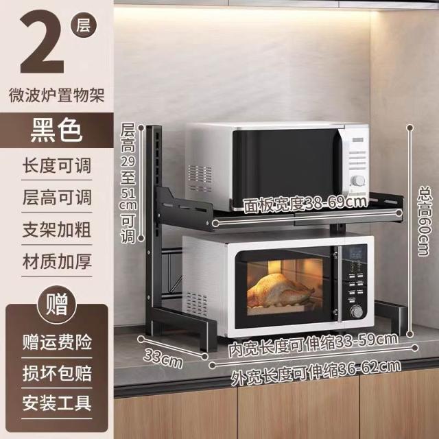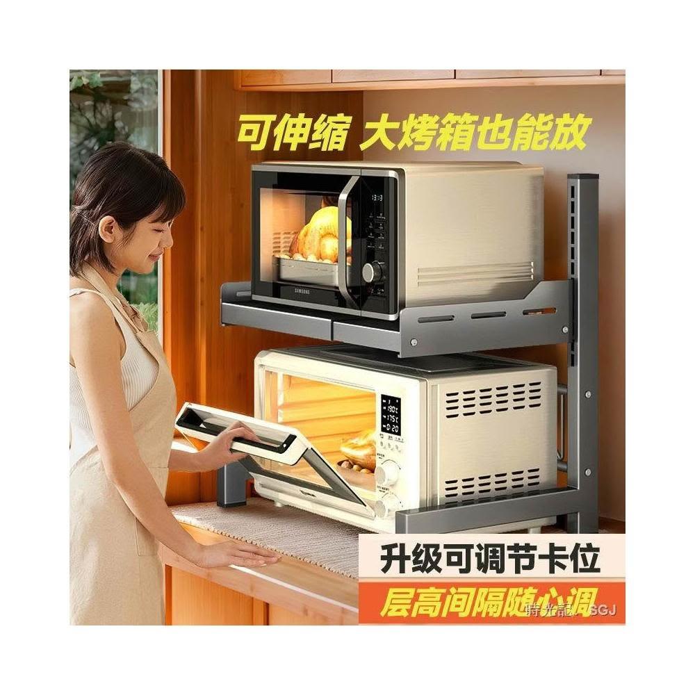 烤箱架子 烤箱架 廚房電器收納櫃 醬料收納架 氣炸鍋收納架 可調層高伸縮微波爐架空氣炸鍋置物架桌面廚房多功能收納二層家用