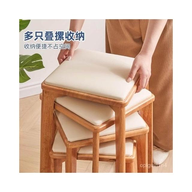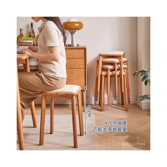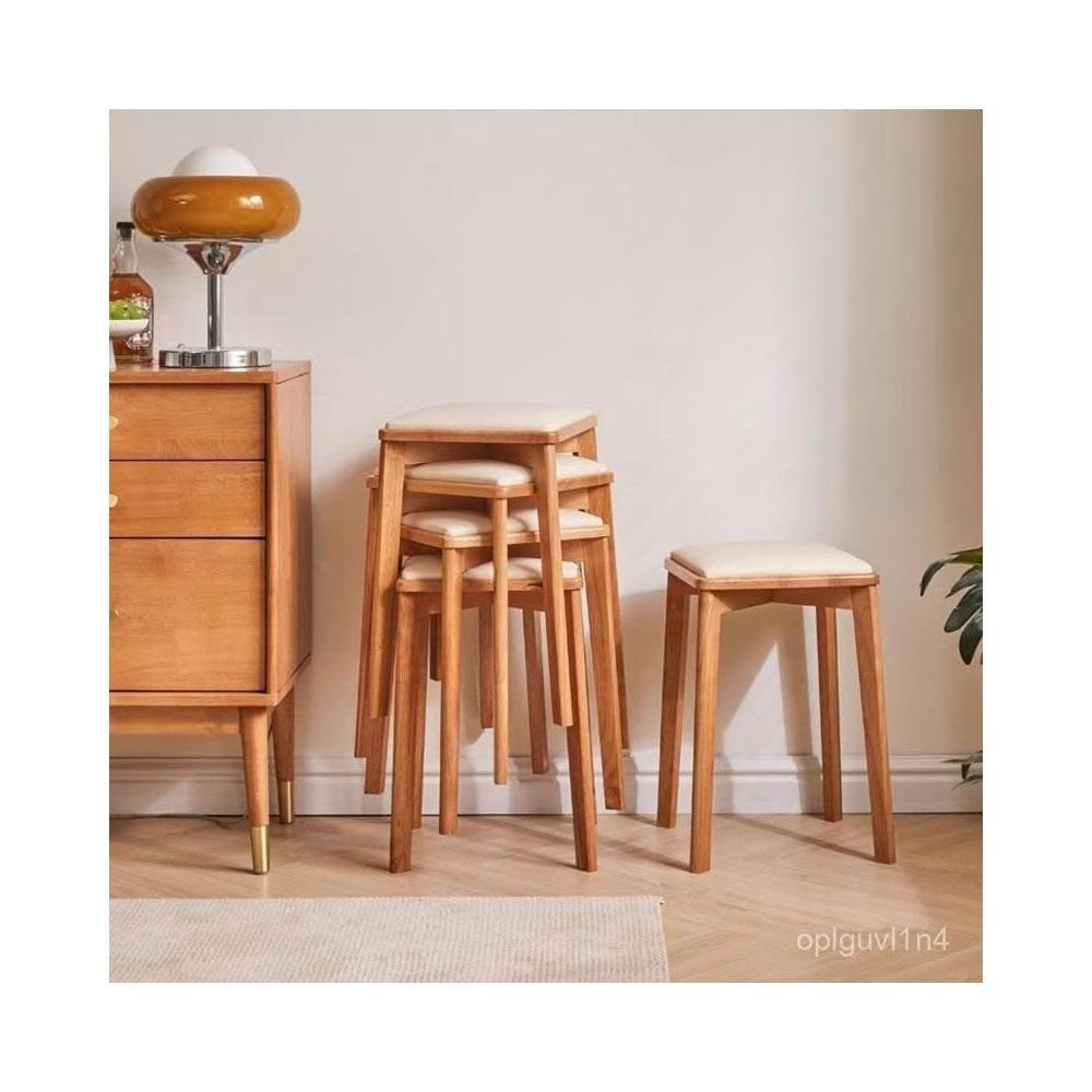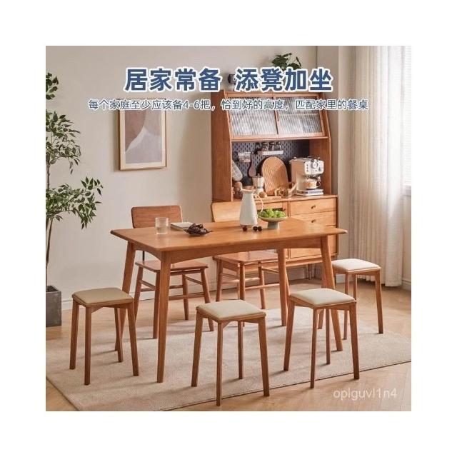 可開發票 廠家直銷 實木餐桌椅結實耐用疊放凳子家用現代簡約化妝椅學習椅子木頭方凳 CTYI