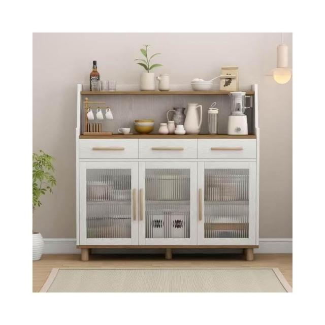 整裝發貨 胡桃木紋實木餐邊櫃靠牆一體現代簡約亮光烤漆儲物櫃北歐家用邊櫃