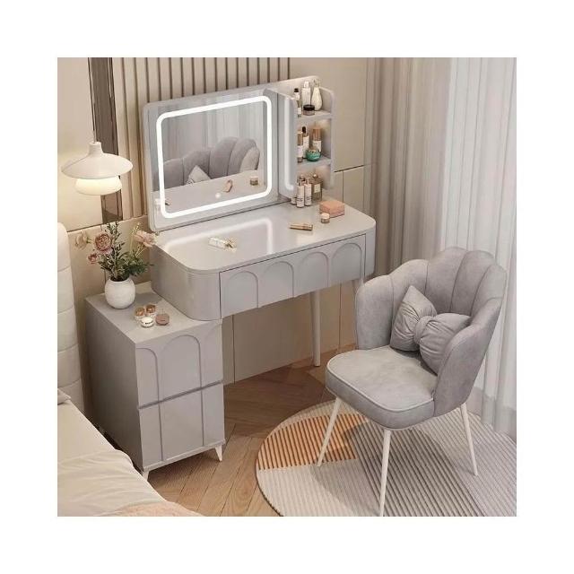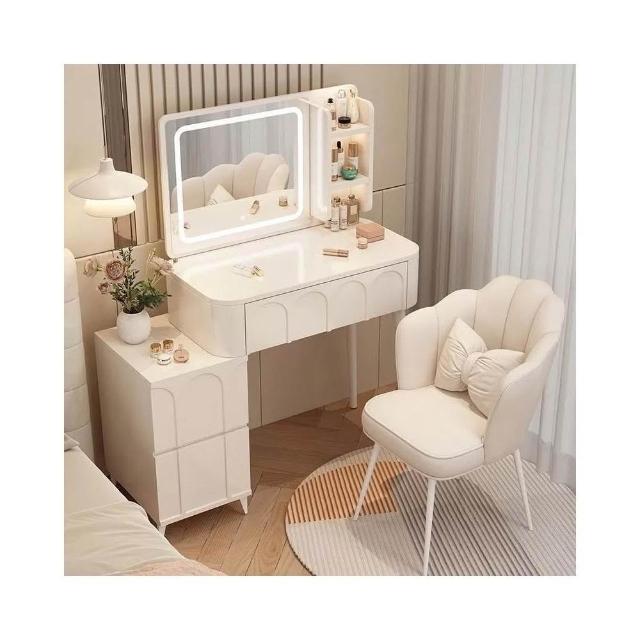 奶油風 梳妝臺 臥室 化妝台 現代 簡約 小戶型 化妝桌 床頭 收納櫃 鏡子 書桌一體