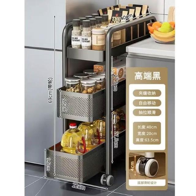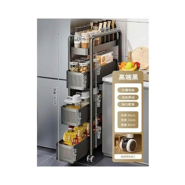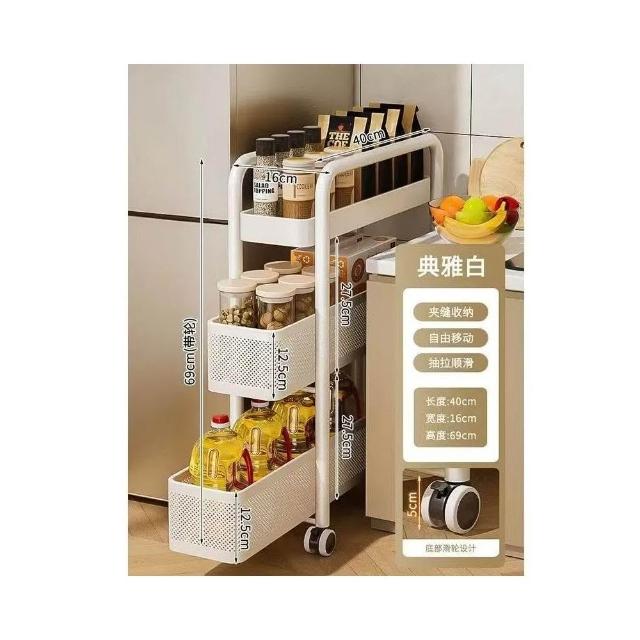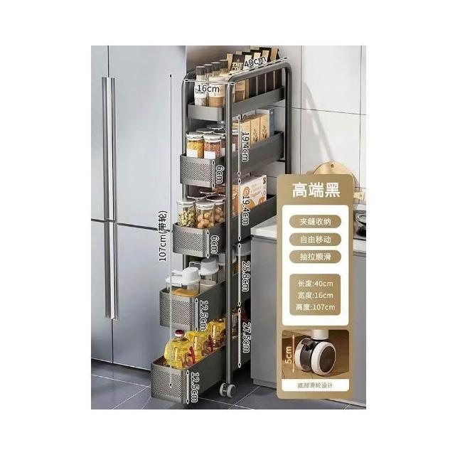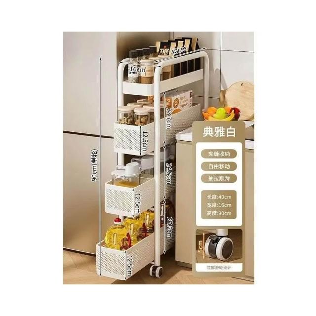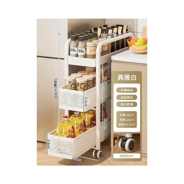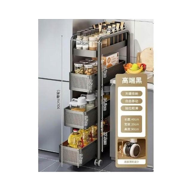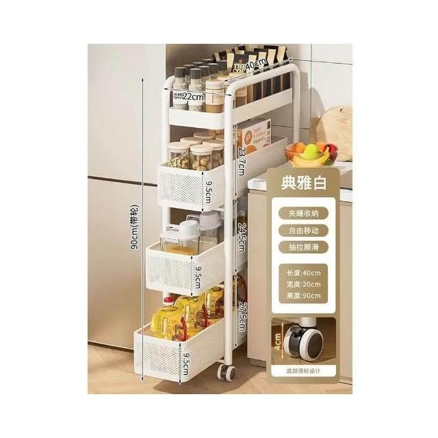 冰箱側邊超窄置物櫃 20面寬抽拉置物櫃 家用儲物櫃 冰箱側櫃 小推車收納架 夾縫置物架 廚房置物架