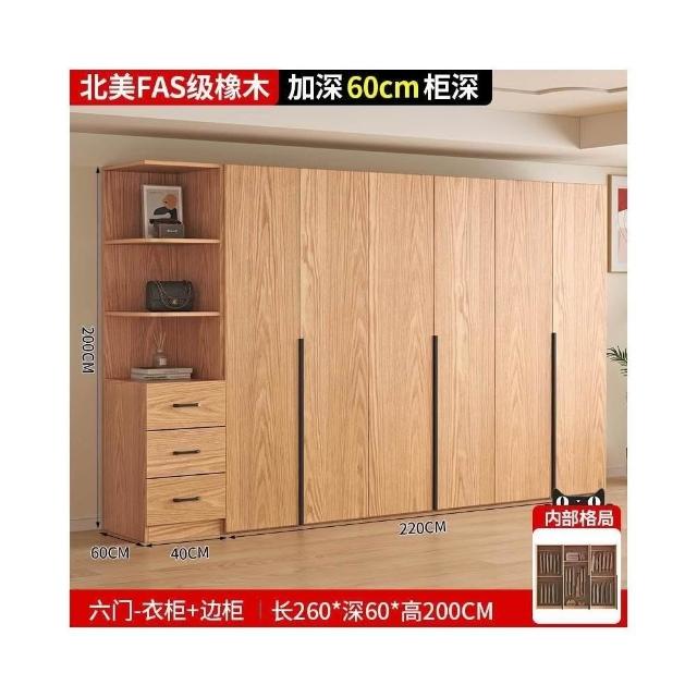 全實木橡木衣櫃家用臥室原木色櫃子可定制經濟型儲物收納兒童衣櫥