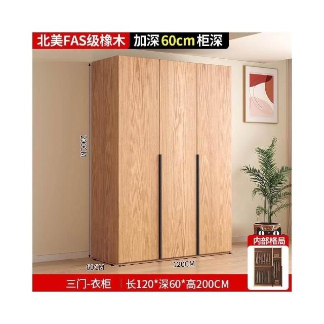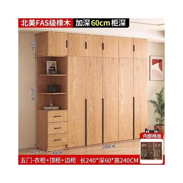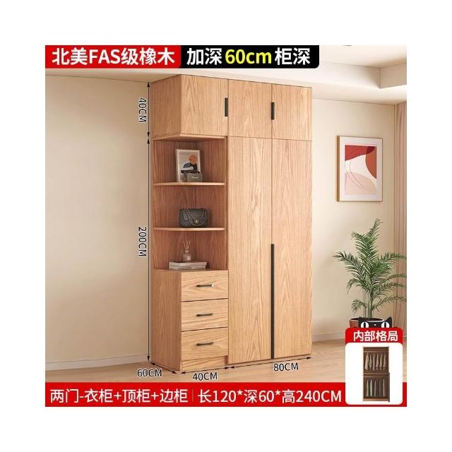 全實木橡木衣櫃家用臥室原木色櫃子可定制經濟型儲物收納兒童衣櫥