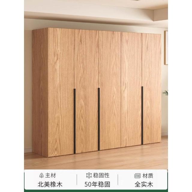 全實木橡木衣櫃家用臥室原木色櫃子可定制經濟型儲物收納兒童衣櫥